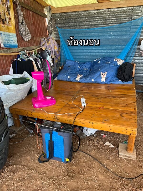 ซึ่งบ้านของรักเรียนชายคนดังกล่าว เป็นเพิงพักหลังคามุงสังกะสี ด้านหน้ากับด้านข้างเปิดโล่ง ข้างในมีเพียงที่นอน และเตียง รวมทั้งครัวเล็กๆ และข้าวของเครื่องใช้ที่จำเป็น ส่วนห้องน้ำไม่มี นอกจากนี้ด้านหลังบ้านก็เป็นที่อาบน้ำแบบเปิดโล่ง มีถังน้ำกับเก้าอี้เท่านั้น ทั้งหมดนี้อยู่กลางสวนมะลิที่นักเรียนทำงานอยู่ ความเป็นอยู่โดยรวมลำบากพอสมควร