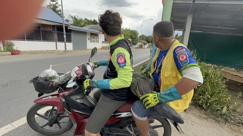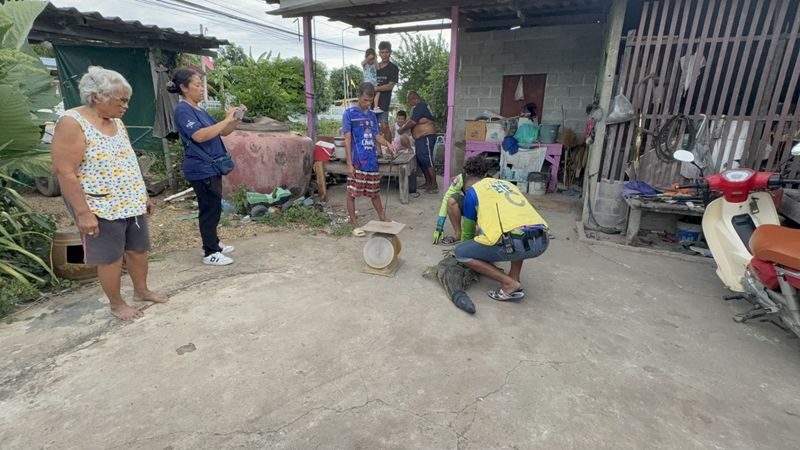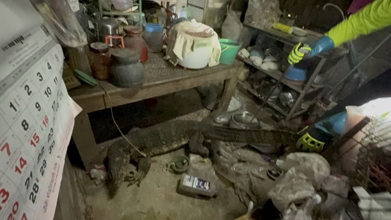 เจ้าของบ้านตกใจนึกว่าจระเข้ ตัวเงินตัวทองขนาดยักษ์วิ่งเข้าบ้าน แถมมีเสียงขู่ คาดมาบอกใบ้ให้โชค เจ้าหน้าที่ป่อเต็กตึ๊งจับตัวขึ้นซ้อนท้าย จยย. ปล่อยคืนสู่ธรรมชาติ