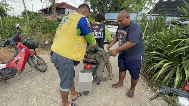 ทาง นายบอย ใช้เวลาจับอยู่นานประมาณ 10 นาที จึงจับตัวได้อย่างปลอดภัยแล้วมัดขาและหางไว้ พร้อมนำขึ้นกิโลตาชั่งตรวจสอบ พบว่ามีน้ำหนัก 28 กิโลกรัม ก่อนช่วยกันจับตัวขึ้นซ้อนท้ายรถจักรยานยนต์ นำไปปล่อยคืนสู่ธรรมชาติ นอกจากนี้ชาวบ้านเล็งเสี่ยงเลขเด็ดคือเลข 6756