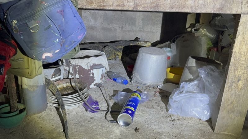 พบ คุณยายสมนึก วัย 66 ปี เจ้าของบ้าน เล่าให้ฟังว่า ขณะนั่งอยู่บริเวณหน้าบ้าน พบตัวเงินตัวทองขนาดใหญ่ไซค์ยักษ์วิ่งเข้ามาภายในบ้าน ก่อนเข้าไปซุกซ่อนตัวอยู่ภายในครัว ตอนแรกคิดว่ามันเป็นจระเข้ เมื่อเข้าไปดูแถมมีเสียงขู่ ๆ ตลอดเวลา