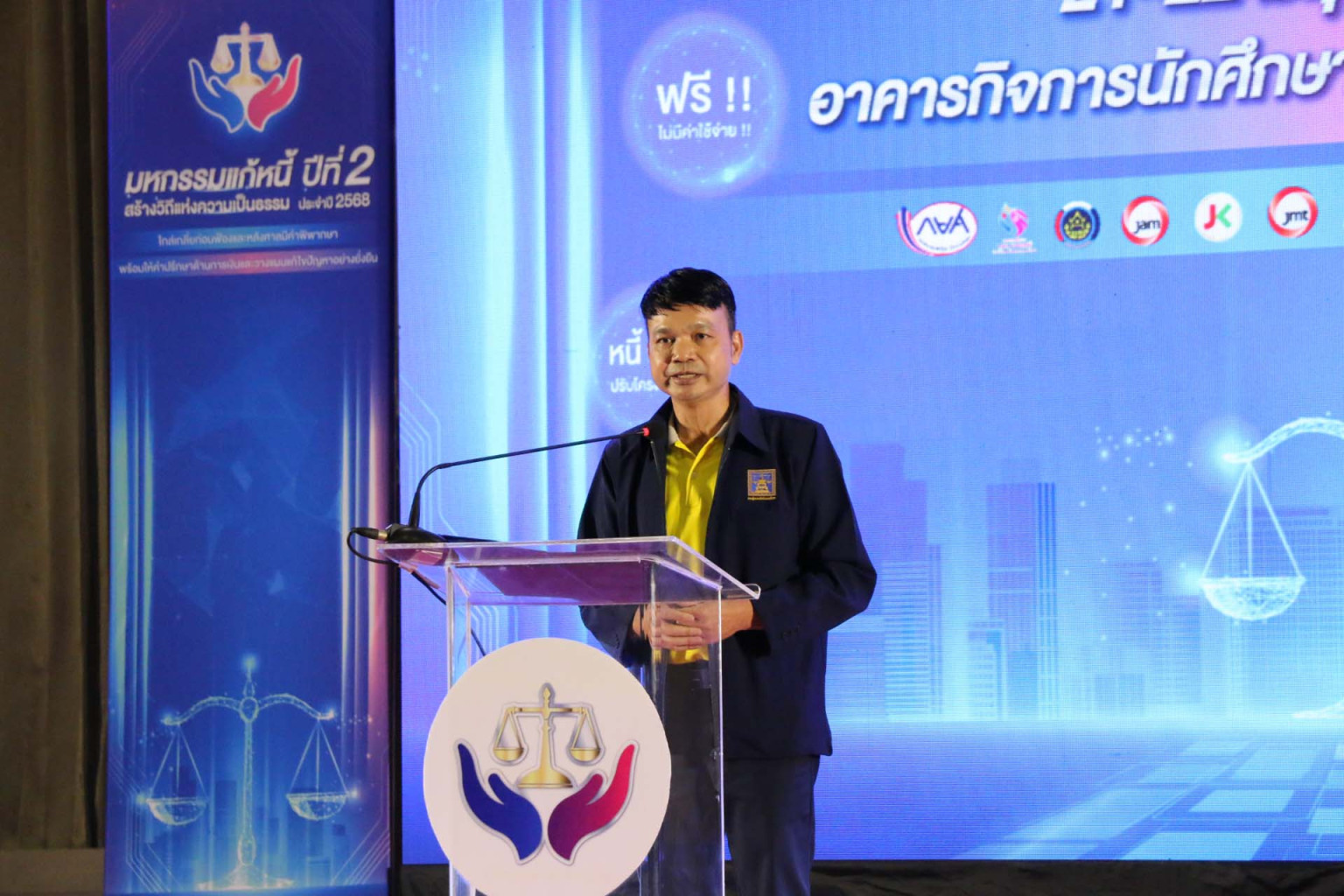 นายธีรยุทธ กล่าวต่อว่า ในช่วงที่ผ่านมา กระทรวงยุติธรรมได้จัดงาน “มหกรรมแก้หนี้ สร้างวิถีแห่งความเป็นธรรม” ปีที่ 1 มาแล้ว ทั้ง 76 จังหวัด จำนวน 89 ครั้ง ช่วยเหลือลูกหนี้ได้ 132,303 ราย จำนวนทุนทรัพย์ 23,901.84 ล้านบาท แยกเป็น ลูกหนี้ก่อนฟ้อง ช่วยเหลือได้ 66,172 ราย ทุนทรัพย์ 11,217.04 ล้านบาท และลูกหนี้หลังศาลมีคำพิพากษา ช่วยเหลือลูกหนี้ไม่ให้ถูกยึดทรัพย์และอายัดทรัพย์ 66,131 ราย ทุนทรัพย์ 12,684.8 ล้านบาท ในส่วนลูกหนี้ กยศ. ครั้งที่ผ่านมา มีการคำนวนยอดหนี้ใหม่ 3.65 ล้านบัญชีเสร็จแล้ว ผู้กู้ 2.98 ล้านราย ได้รับประโยชน์ ช่วยลดหนี้ผู้กู้เป็นเงินกว่า 56,326 ล้านบาท ปลดภาระผู้ค้ำได้ 2.8 ล้านราย