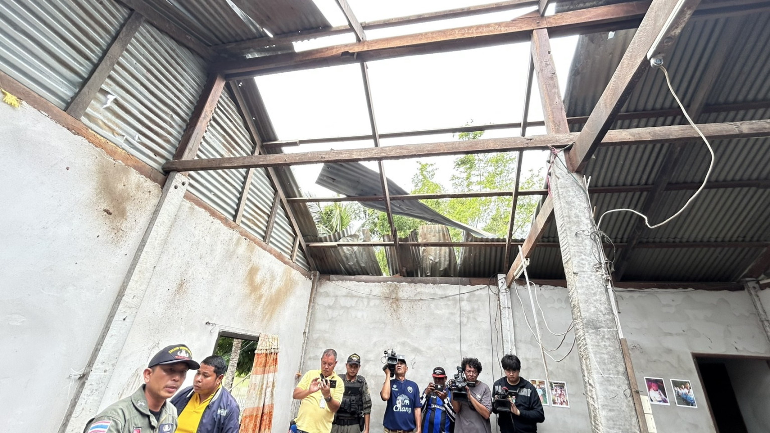 วันที่ 28 ก.ค.68 ผู้สื่อข่าวรายงาน ว่า จากกรณีตำรวจ EOD ของ ตชด.เข้าไปตรวจสอบบ้านปูนชั้นเดียวเลขที่ 53 ม.6 ต.บ้านกรวด อ.บ้านกรวด จ.บุรีรัมย์ หลังนายเสงี่ยม ตัวประโคน อายุ 64 ปี เจ้าของบ้านแจ้งเจ้าหน้าที่ว่าบ้านอาจจะถูกยิงจากปืนใหญ่ของเขมร เนื่องจากหลังคาบ้านเป็นรูขนาดเส้นผ่าศูนย์กลางประมาณ 40 ซม.และพื้นบ้านในห้องนอนของบ้านพบรูขนาดใหญ่เจาะเข้าพื้นปูน ซึ่งเบื้องต้นเจ้าหน้าที่คาดว่าน่าจะเป็นลูกจรวด BM 21 ของทหารเขมรที่ยิงเข้ามา โดยนายเสงี่ยม เจ้าของบ้านให้ข้อมูลกับเจ้าหน้าที่เชื่อว่าน่าจะถูกจรวดเมื่อวันที่ 24 ก.ค.วันปะทะกันวันแรก