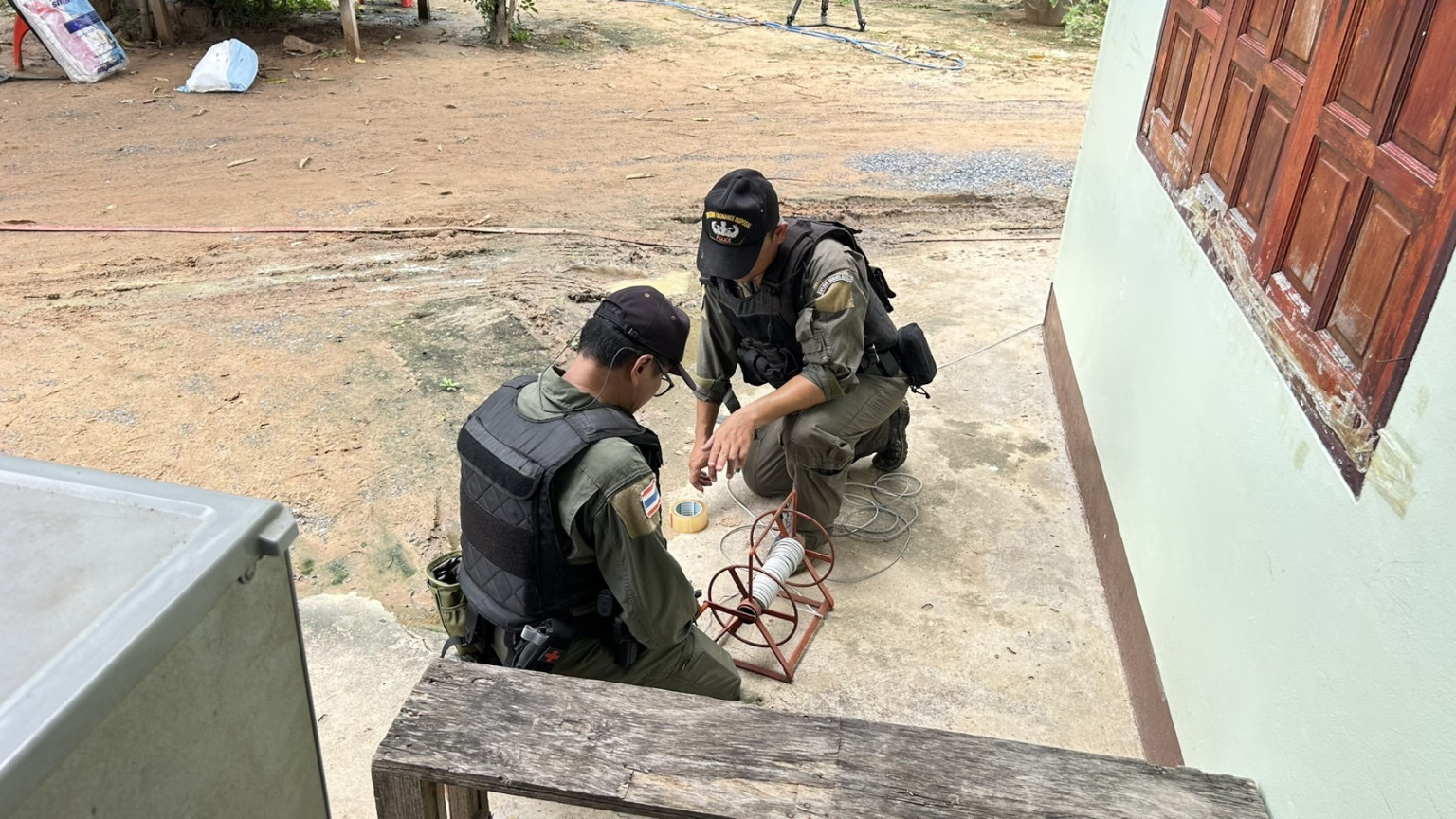 ตำรวจชุด EOD ตชด.พยายามเก็บกู้จรวด BM 21 ที่ฝังอยู่ใต้พื้นบ้านไม่สำเร็จจำเป็นต้องทำลาย