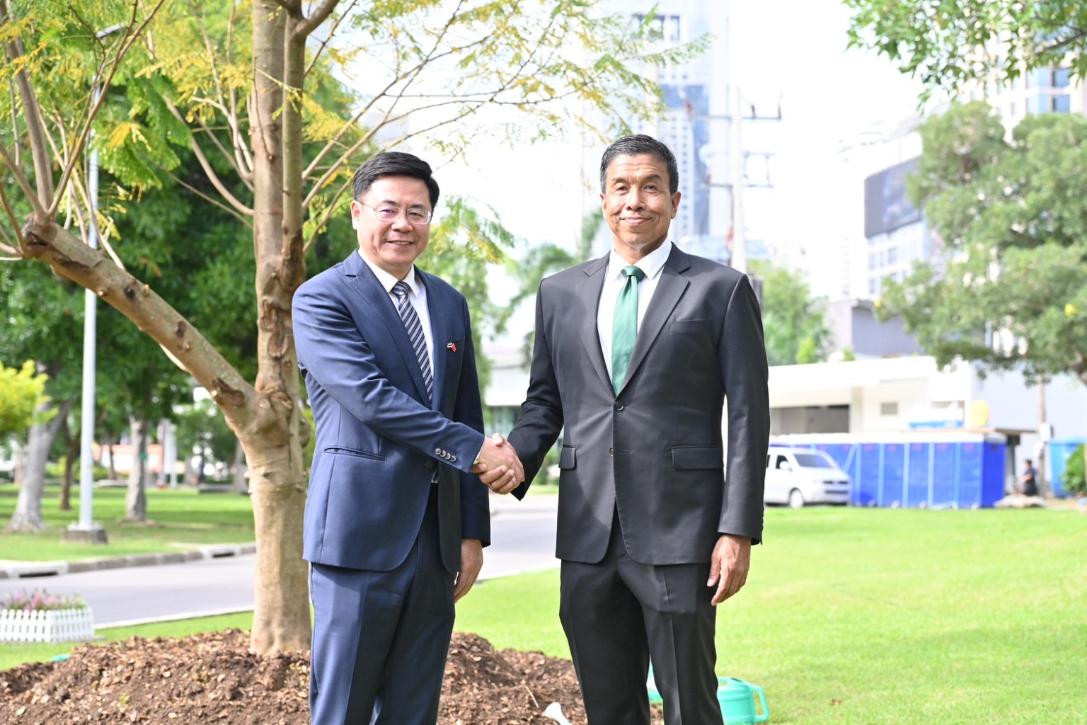นายชัชชาติ สิทธิพันธุ์ ผู้ว่าฯกทม.พร้อมด้วยนายเฉิน เทา (H.E. Mr. Chen Tao) นายกเทศมนตรีนครซัวเถา และคณะผู้แทนครซัวเถา สาธารณรัฐประชาชนจีน ร่วมปลูกต้นไม้ (ต้นหางนกยูง) เพื่อฉลองครบรอบ 25 ปี ความสัมพันธ์ฉันมิตรระหว่างกรุงเทพมหานครกับนครซัวเถา และ 50 ปี ความสัมพันธ์ทางการทูตไทย-จีนสานต่อความร่วมมือและความเข้าใจอันดีระหว่างกัน สำหรับต้นหางนกยูง เป็นต้นไม้ประจำนครซัวเถา เปรียบดั่งสัญลักษณ์แห่งความงดงาม ความยั่งยืน และมิตรภาพอันแน่นแฟ้นระหว่างสองเมือง
