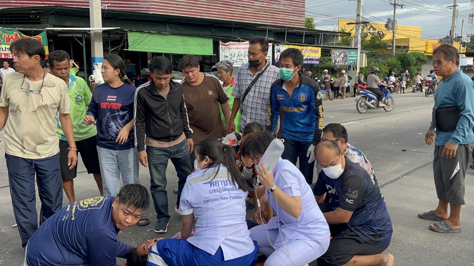 โดยมีนักเรียนกระเด็นออกจากรถหลายราย ได้รับบาดเจ็บร้องกันระงม ภายในรถกระบะรับส่งนักเรียน ยังมีคนขับติดอยู่ภายไม่รู้สึกตัว และมีนักเรียนหญิงติดอยู่ภายใน ได้รับบาดเจ็บที่มือด้านขวาแตก เจ้าหน้าที่กู้ภัย จึงช่วยกันงัดรถเพื่อนำคนขับและนักเรียนที่ได้รับบาดเจ็บส่งโรงพยาบาลสามชุก ซึ่งกล้องวงจรปิดบันทึกภาพขณะเกิดเหตุเอาไว้ได้อย่างชัดเจน