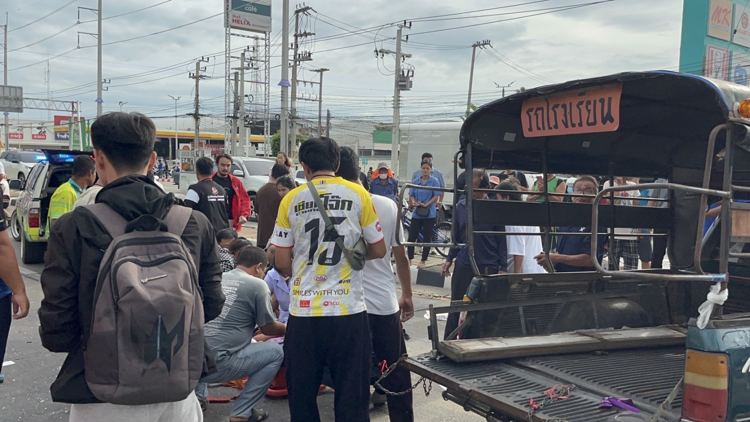 เวลา 07.30 น.วันที่ 11 มิ.ย.พ.ต.ท.คมเดช สุขรัตนวงศ์ รองผู้กำกับสอบสวน สภ.สามชุก จังหวัดสุพรรณบุรี รับแจ้งมีอุบัติเหตุ รถพ่วงฝ่าสัญญาณไฟแดง ชนรถรับส่งนักเรียนมีนักเรียนบาดเจ็บหลายราย เหตุเกิดบริเวณสี่แยกสามชุก ถนน 340 สุพรรณบุรี-ชัยนาท หมู่ 2 ตำบลสามชุก จึงพร้อมด้วยนายสุระบัณฑิต กันยานะ นายอำเภอสามชุกและเจ้าหน้าที่มูลนิธิเสมอกันกู้ภัยสุพรรณบุรี ไปตรวจสอบ