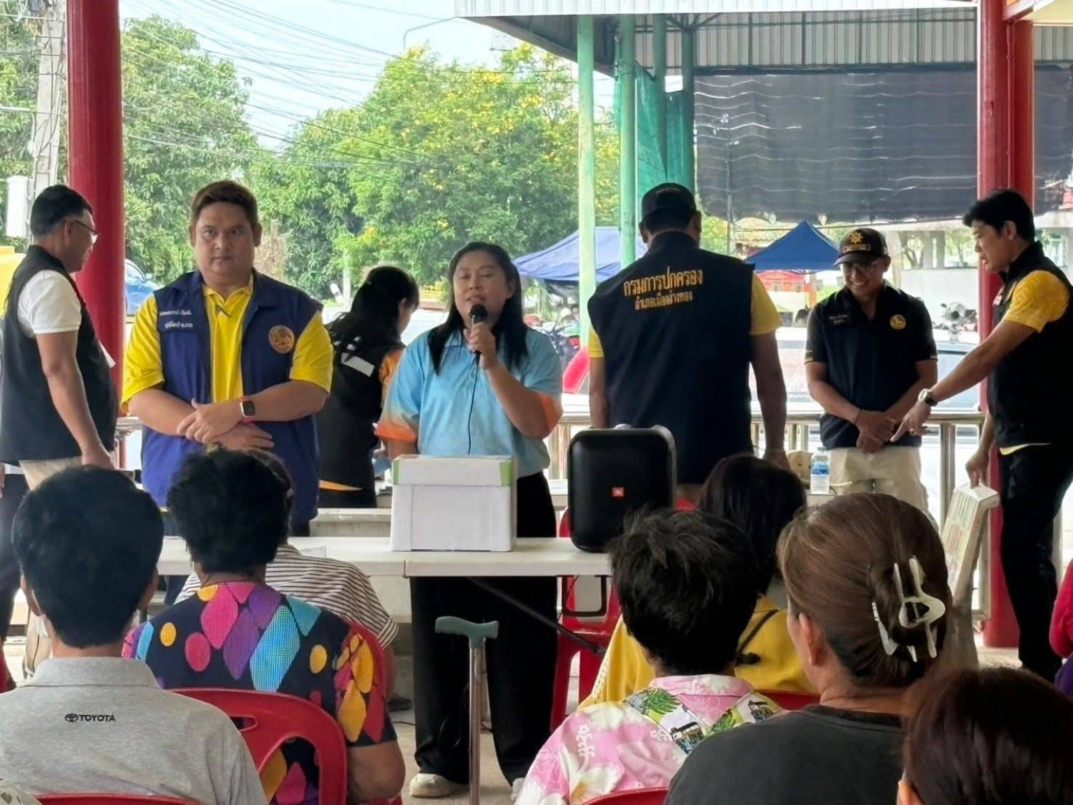 วันที่ 21 กรกฎาคม 2568 นายประวิทย์ ษรสา พัฒนาการอำเภอเมืองอ่างทอง มอบหมายให้ นางสาวกนกนาถ คุณชู นักวิชาการพัฒนาชุมชนปฏิบัติการ สำนักงานพัฒนาชุมชนอำเภอเมืองอ่างทอง สนับสนุนการดำเนินงานพัฒนาและฟื้นฟูหมู่บ้านกองทุนแม่ของแผ่นดินที่มีผลการตรวจสุขภาพ ระดับ C/หมู่บ้านกองทุนแม่ของแผ่นดินที่มีปัญหายาเสพติด ณ ศาลาประชาคมหมู่บ้าน หมู่ที่ 8 และ 9 ตำบลหัวไผ่ อำเภอเมืองอ่างทอง จังหวัดอ่างทอง
