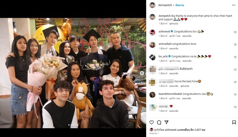 โดยเป็นภาพจากโพสต์ของ โดม เดอะเฟซ เรียนจบ Diploma/High Vocational Certificate ที่ Newton Business University ท่ามกลางเพื่อนๆไปร่วมยินดี รวมถึงอชิ และ แม่โบ ด้วย ส่วนอีกโพสต์ โดม กับเพื่อนๆ ซึ่งมี มิย่า และ เซย่า พร้อมทั้งคุณแม่เจ็งไปร่วมงานด้วยเช่นกัน