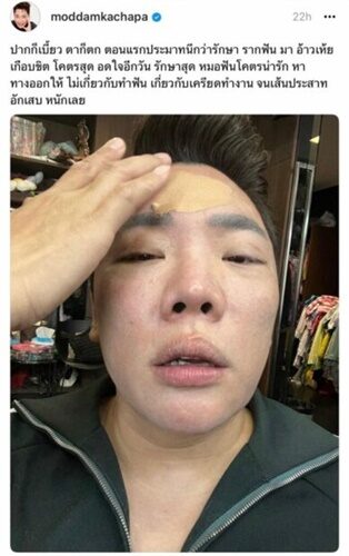 “ตอนแรกคิดว่าทำฟัน ปรากฏไม่เกี่ยว มันเป็นแบบว่าพักผ่อนไม่เพียงพอ เหมือนที่พลอย เฌอมาลย์ เป็น เขาบอกว่าเป็นโรคหน้าเบี้ยวครึ่งซีก พี่เป็นตั้งแต่วันจันทร์