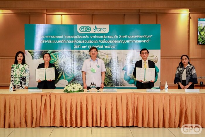 นพ.วิฑูรย์ ด่านวิบูลย์ ผอ.อภ. กล่าวว่า อภ.กระจายผลิตภัณฑ์สารสกัดกัญชาทั้ง THC เด่น CBD เด่น และTHC : CBD 1 : 1 ให้สถานพยาบาลกว่า 100 แห่ง พบว่ามีประสิทธิผลดี ทำให้มีความต้องการมากขึ้น โดยเฉพาะ CBD เด่น และ อภ.มีแผนผลิตผลิตภัณฑ์สุขภาพที่ใช้สาร CBD เป็นวัตถุดิบอีกหลายรายการ จึงแสวงหาแหล่งปลูกกัญชาสายพันธุ์ CBD เด่นเพิ่มจากที่ อภ.ปลูกเอง โดยร่วมกับวิสาหกิจชุมชนที่มีประสบการณ์ปลูกกัญชาที่มีสาร CBD เด่น และได้รับการอนุญาตจาก อย. มีผลตรวจวิเคราะห์ช่อดอกแห้งที่มีปริมาณสาร CBD เด่น สูงตั้งแต่ 8% (โดยน้ำหนัก) ขึ้นไป