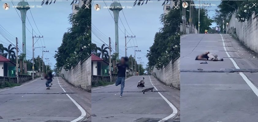 “อย่างที่ทุกคนเห็นว่าเพื่อนโมล้มหัวฟาดพื้นจากอุบัติเหตุระหว่างเล่นสเกตบอร์ด แต่อันนี้เราก็ต้องขอโทษและต้องยอมรับผิดก่อนว่าตัวเราเองประมาทจริงๆ แต่ในเมื่อเขาไม่ได้ตายเพราะฉะนั้นเราต้องรีบส่งโรงพยาบาลให้เร็วที่สุด ตอนนั้นโมก็นึกขึ้นได้ว่ามีโรงพยาบาลหนึ่งที่พัทยา ระยะทางจากที่เกิดเหตุไปโรงพยาบาลใช้เวลาประมาณ 28 นาที ค่อนข้างนานเหมือนกัน แต่ก็โชคดีที่รถไม่ได้ติด แต่ว่าในขณะที่เพื่อนอยู่ในรถเลือดก็ออกจากหูเต็มไปหมด รวมถึงต้องคอยเรียกให้ตื่นอยู่ตลอด กลัวเขาหลับแล้ววูบไปเลย”