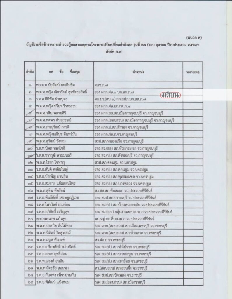 เปิด 49 รายชื่อเออร์ลี่ ตำรวจภูธรภาค 7 มีชื่อ พล.ต.ท.นัยวัฒน์ ผบช.ภ.7 อยู่ด้วย