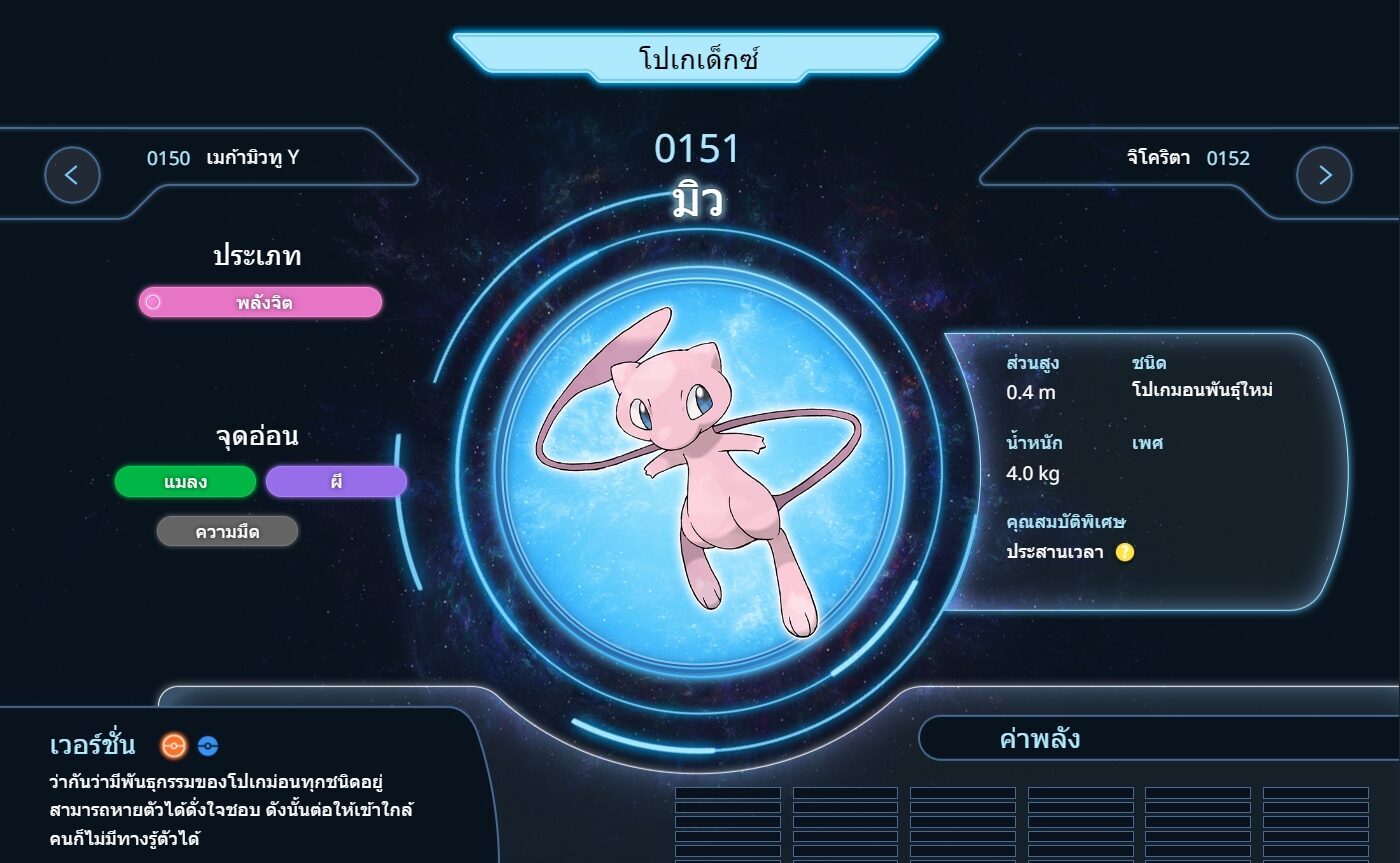 จากข้อมูล “มิว” เป็นโปเกมอนในตำนาน รูปแบบพลังจิต สีชมพู ตัวเล็ก ร่างคล้ายแมว ต่อมา ชิเงะกิ โมะริโมะโตะ โปรแกรมเมอร์ของเกมฟรีกและเป็นผู้สร้าง ได้ใส่ “มิว” ไว้ในเกมโปเกมอนภาคเรดและกรีน ให้เป็นตัวละครลับ