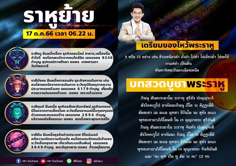 - อ่าน เปิดฤกษ์ไหว้ ราหู 17 ตุลาคม 2566 วิธีไหว้-ของไหว้ พร้อมบทสวด