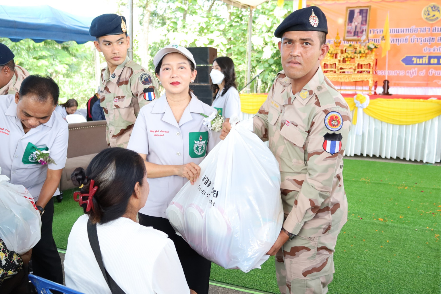 กิจกรรมในวันนี้เริ่มตั้งแต่ช่วงเช้า เวลาประมาณ 06.00 น. โดยหน่วยงานราชการ หน่วยแพทย์อาสา และภาคส่วนต่าง ๆ ร่วมให้บริการประชาชนอย่างครอบคลุม ทั้งด้านการแพทย์ ทันตกรรม การแจกเวชภัณฑ์ บริการตัดผม กิจกรรมส่งเสริมสุขภาพ การให้คำปรึกษาด้านสิทธิประโยชน์ และบริการลงทะเบียนต่าง ๆ ซึ่งตลอดช่วงเช้าจนถึงเที่ยงวัน บรรยากาศเป็นไปด้วยความคึกคัก ประชาชนในพื้นที่เข้ารับบริการอย่างต่อเนื่อง โดยมีหน่วยงานต่าง ๆ ร่วมให้บริการครบวงจร อาทิ กระทรวงยุติธรรม กรมการปกครอง กรมพัฒนาสังคมและความมั่นคงของมนุษย์ ตลอดจนองค์กรปกครองส่วนท้องถิ่น ทั้งยังมีการแจกจ่ายเครื่องอุปโภคบริโภค มอบอุปกรณ์ยังชีพแก่ผู้ด้อยโอกาส การแสดงของนักเรียน การจำหน่ายสินค้า OTOP และผลิตภัณฑ์จากชุมชน เพื่อส่งเสริมเศรษฐกิจฐานรากและสร้างความเข้มแข็งให้กับพื้นที่