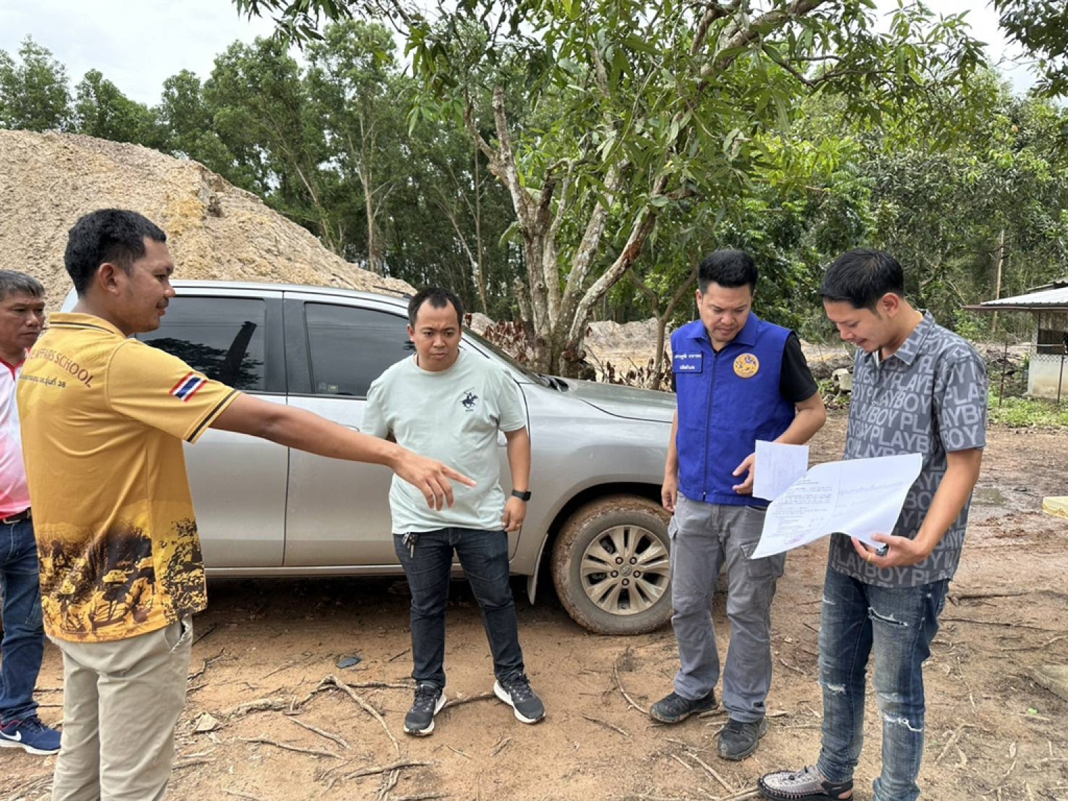 ในการตรวจสอบครั้งนี้ มีนายเนาว์ อายุ 59 ปี เจ้าของที่ดิน และนายอ๊อฟ เจ้าของรถบรรทุกและเครื่องจักรหนัก นำเจ้าหน้าที่เข้าตรวจสอบพื้นที่พบว่าพื้นที่ดังกล่าวเป็นดินทราย พร้อมนำใบอนุญาตขุดและถมดินจาก อบต.ชากโดน มาแสดงต่อเจ้าหน้าที่ เพื่อยืนยันว่าเป็นการดำเนินการถูกต้องตามขั้นตอน