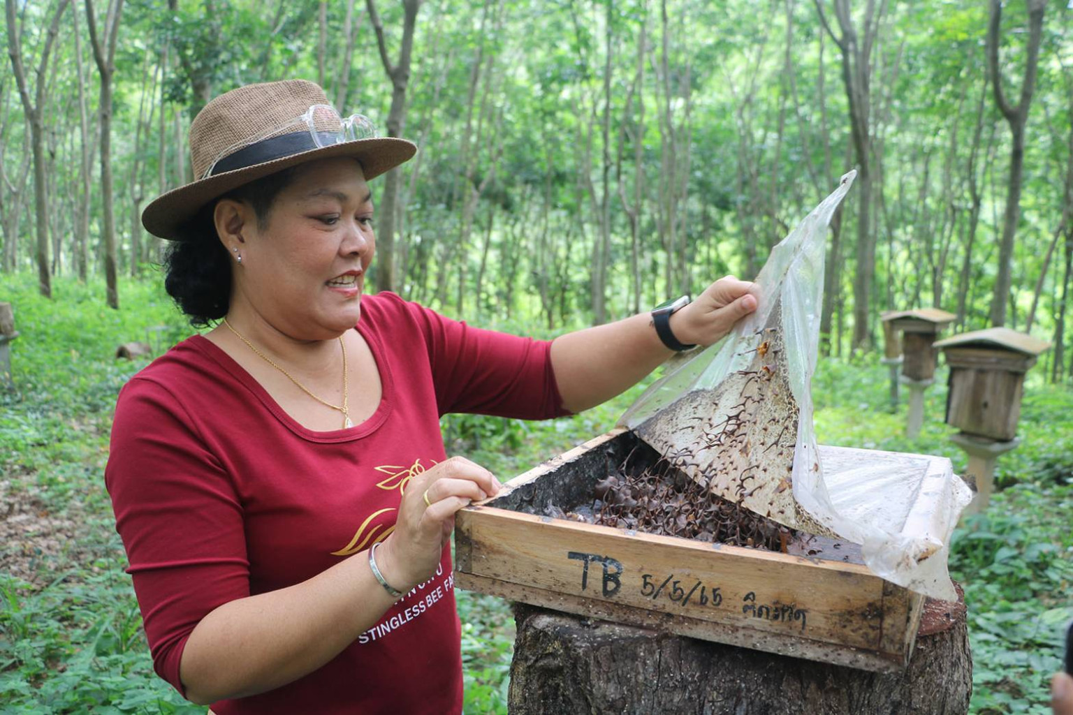 ชันโรงหลายสายพันธุ์ถูกนำมาเลี้ยงในสวนยางที่ อ.สวนผึ้ง จ.ราชบุรี กว่า 600 รัง สร้างรายได้ดี