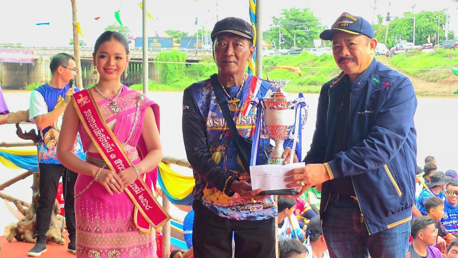 หลังเสร็จสิ้นการแข่งขัน ด้วย ดร.สุชาติ ลายน้ำเงิน ประธานมูลนิธิน้ำสะอาดเพื่อชีวิต และ นายณภัทร เอมอ่อน นายอำเภอบ้านหมี่ เป็นประธานมอบถ้วยรางวัลให้แก่ทีมเรือที่ชนะการแข่งขันในแต่ละประเภท โดย 12 พาย ในการเป็นเจ้าแห่งสายน้ำ ประเภท Open เรือยาว 12 ฝีพาย ประเภทถ้วย ก. ซึ่งเป็นการพบกันระหว่างเรือเจ้าถิ่น “แม่พญาผึ้ง จาก ตำบลบางพึ่ง อำเภอบ้านหมี่ ” พบกับ “ เรือหนุมาน 88 (A) จากเทศบาลเมืองบ้านหมี่ ปรากฏว่า “ เรือ แม่พญาผึ้ง” มีความเร็วมากกว่า เอาชนะไปได้อย่างสนุกสุดมัน ได้ถ้วยรางวัล จาก พระโสภณพัฒนคุณ (เจ้าคุณทิน) เจ้าคณะอำเภอหนองม่วง เจ้าอาวาสวัดพุน้อย ไปครอง พร้อมเงินรางวัล