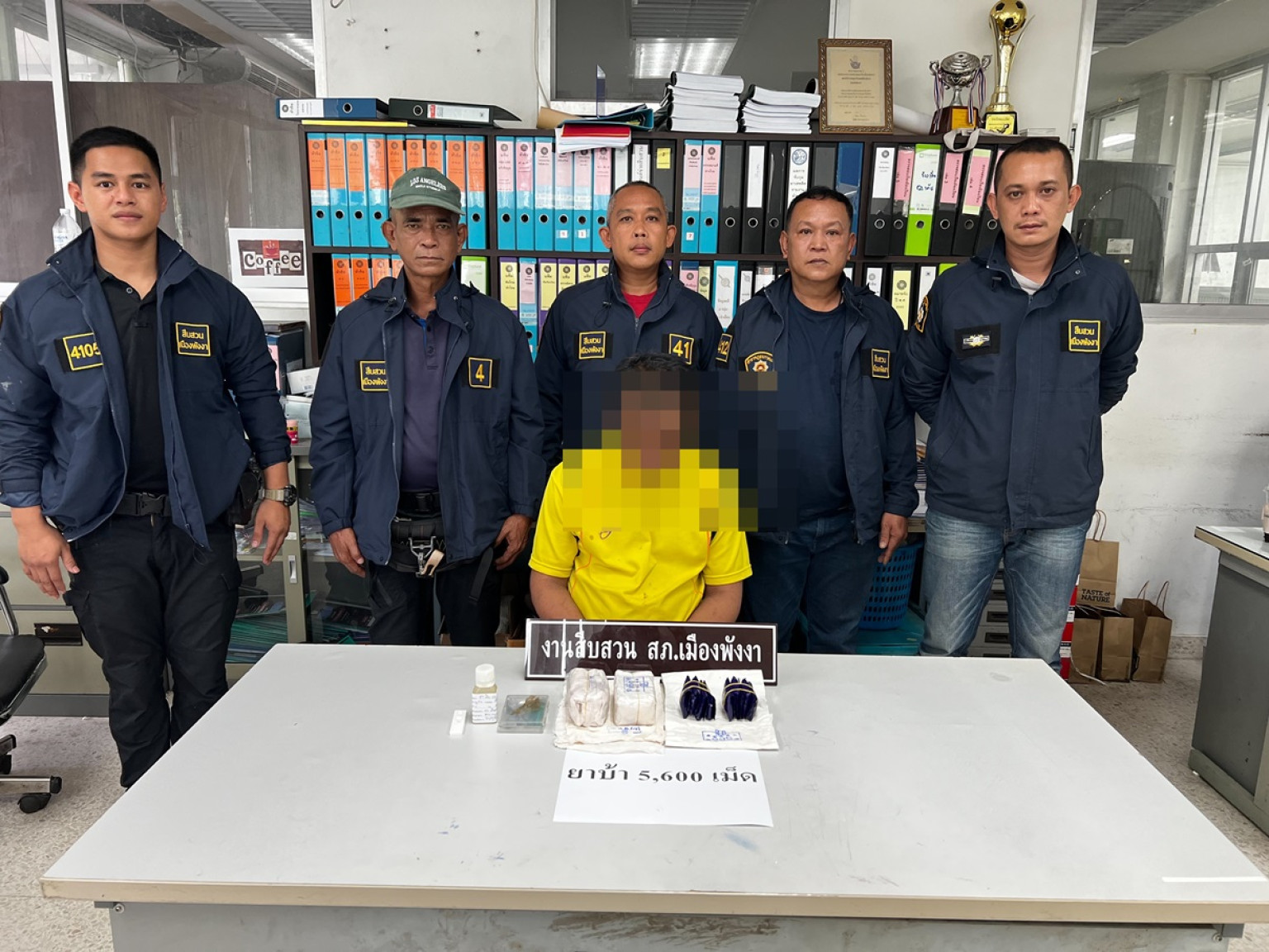 วันที่ 17 มิถุนายน 2568 ภายใต้การอำนวยการของ พ.ต.อ.วีระพงศ์ รักขิโต ผกก.สภ เมืองพังงา และพ.ต.ท.อุทัย เพชรอาวุธ รอง ผกก สส.สภ.เมืองพังงา นำโดย พ.ต.ท.นิมิตร กล่อมกำเนิด สว.สวฯ,ร.ต.อ.จักรกฤษณ์ ศรีกลับ รอง สว.สส สภ.เมืองพังงา ,ร.ต.ท.พูลสุข สิทธิศิลป์,ร.ต.ท.วีระเดช วรรณสุข,ร.ต.ต.นิทัศน์ เอียดจุ้ย พร้อมพวกได้จับกุมนายชาญชัย (สงวนนามสกุล) อายุ43ปี พร้อมของกลาง ยาบ้าจำนวน5,600เม็ด พร้อมอุปกรณ์การเสพ 1ชุด ที่บ้านไม่ทราบเลขที่ ม.2 ต.เกาะปันหยี อ.เมืองพังงา จ.พังงา เเจ้งข้อหา มียาเสพติดให้โทษประเภท 1 (ยาบ้า) ไว้ในความครอบครองเพื่อจำหน่ายฯ นำส่งพนักงานสอบสวนสภ.เมืองพังงา
