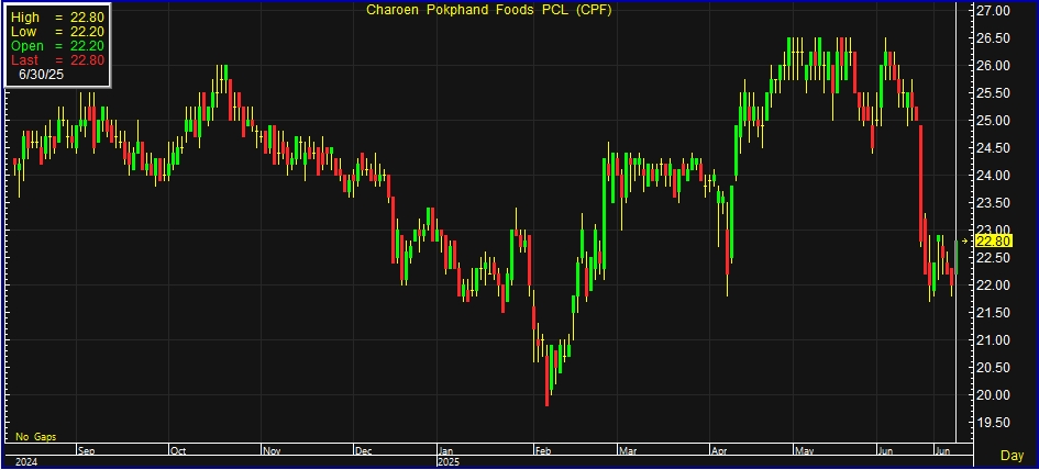 อัพเดต 30 มิ.ย. 2568 เวลา 04.52 น. • เผยแพร่ 30 มิ.ย. 2568 เวลา 04.52 น. • ข่าวหุ้นธุรกิจออนไลน์ผู้สื่อข่าวรายงานว่า วันนี้ (30 มิ.ย.68) ราคาหุ้น บริษัท เจริญโภคภัณฑ์อาหาร จำกัด (มหาชน) หรือ CPF ณ เวลา 11:34 น. อยู่ที่ระดับ 22.80 บาท บวก 0.80 บาท หรือ 3.64% สูงสุดที่ระดับ 22.80 บาท ต่ำสุดที่ระดับ 22.20 บาท ด้วยมูลค่าการซื้อขาย 209.25 ล้านบาท