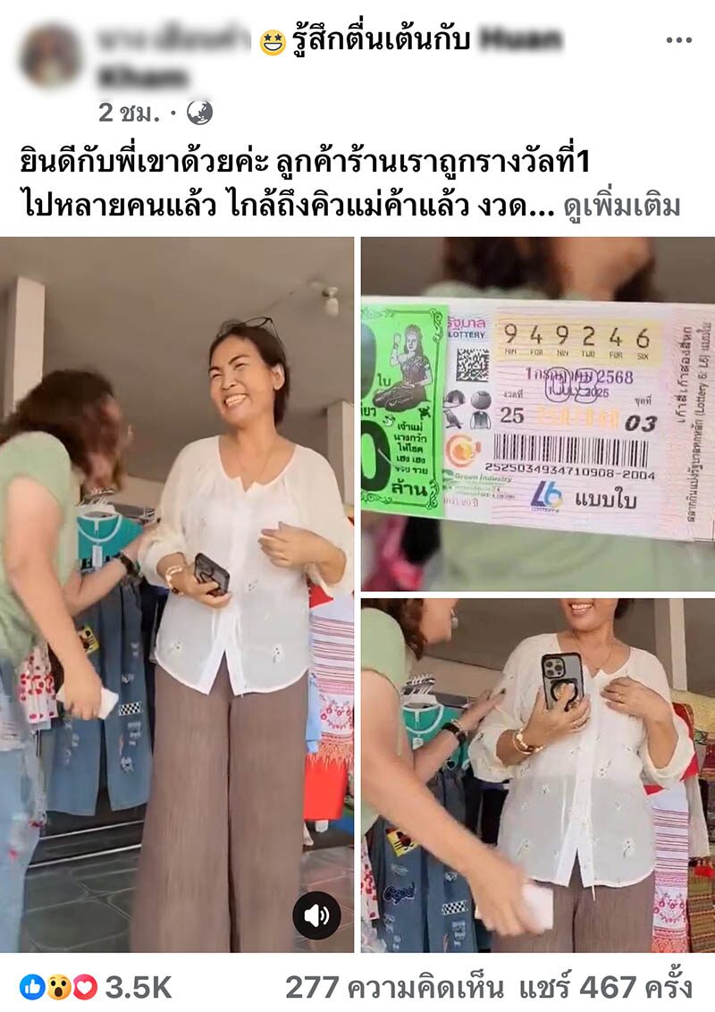 เฮลั่น! สาวไทใหญ่ ถูกรางวัลที่ 1 เต็มๆ 10 ใบ ขึ้นแท่นเศรษฐินีรวย 60 ล้าน เพื่อนๆ กรี๊ดลั่น แสดงความยินดีกันเพียบ