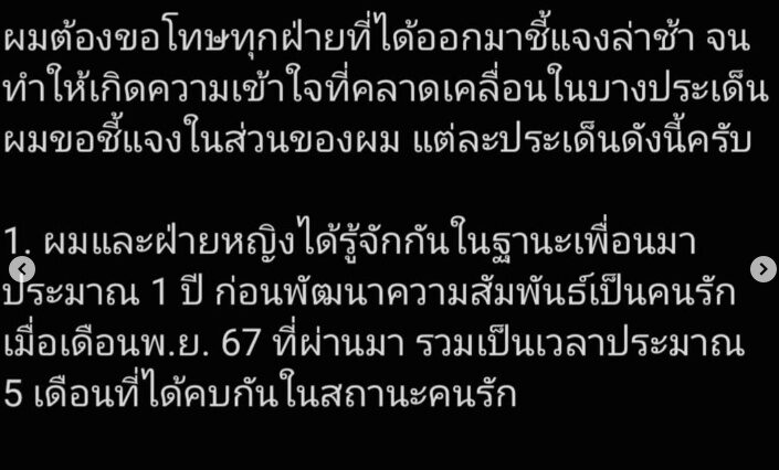 ล่าสุด ทีเค ธนกฤต ออกมาโพสต์ยาวเหยียดชี้แจง 7 ข้อ ถึงความเข้าใจคลาดเคลื่อนที่เกิดขึ้น พร้อมข้อความขอโทษ และข้อความถึงลูกน้อยด้วยว่า “ขอบคุณสำหรับทุกๆกำลังใจและต้องขอโทษที่ทำให้ผิดหวังนะครับ”