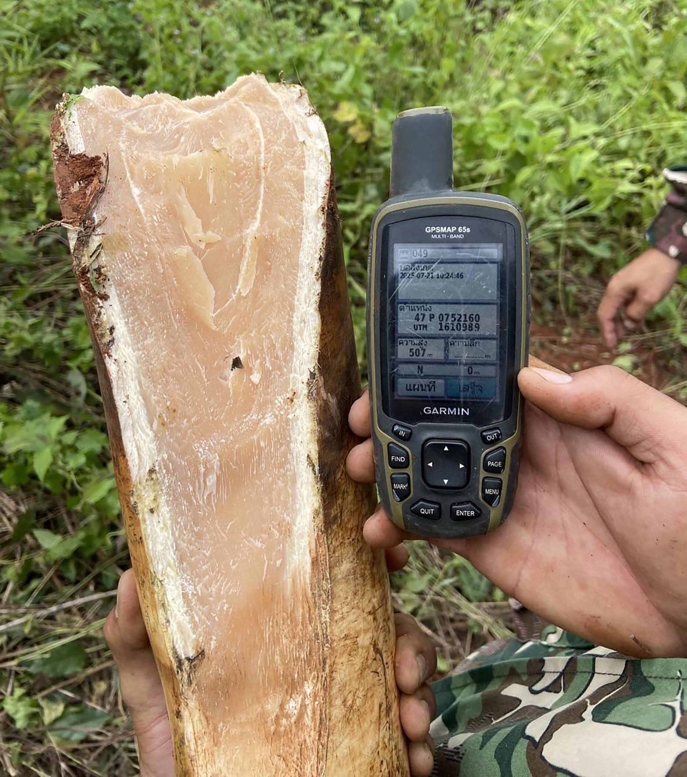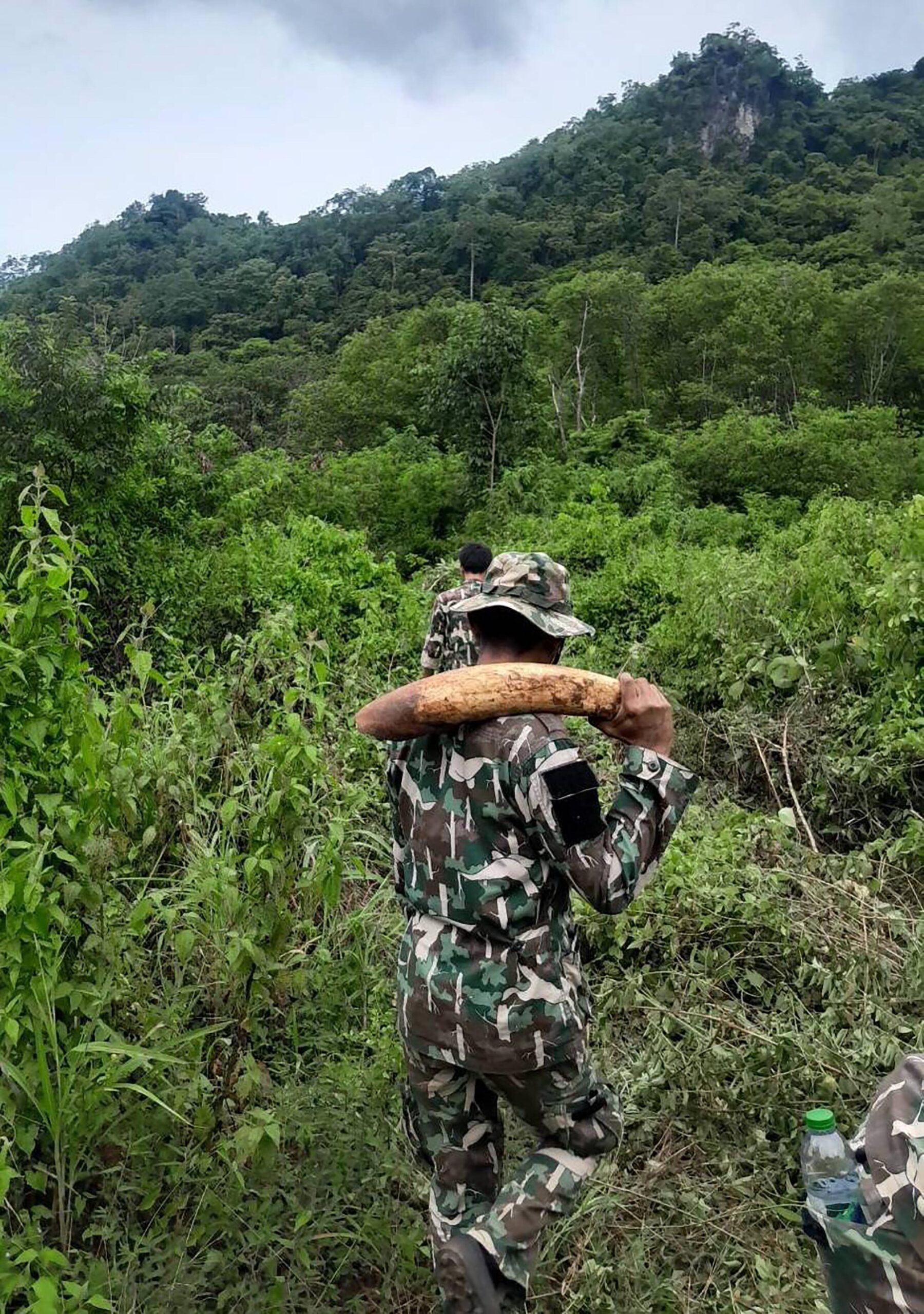 หลังช้างป่า 2 ต่อสู้กัน มาพบภาพพลายด้วนมีงานหักบริเวณด้านซ้าย จึงส่งเจ้าหน้าที่เข้าตรวจสอบ บริเวณตามที่ได้รับแจ้ง เจ้าหน้าที่พบร่องรอยการต่อสู้ของช้างป่า และตรวจสอบซึ่งเป็นช่วงกลางคืน จนในช่วงเช้าวันนี้ พบงาช้างจำนวน 1 กิ่ง เป็นงาช้างขนาดใหญ่ ที่พื้น
