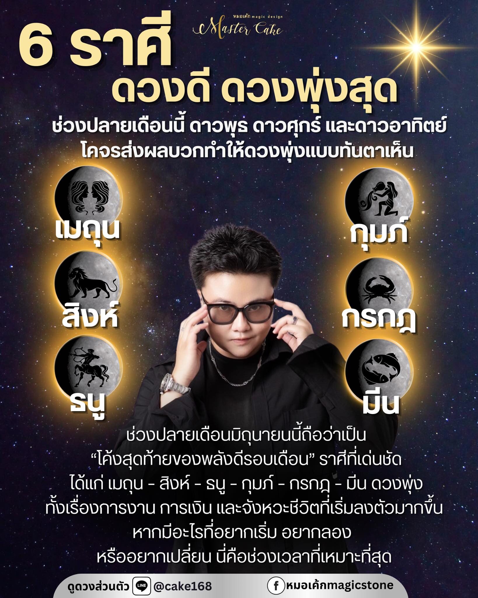หมอเค้กMagic stone เผยในเพจถึงดวงชะตาราศี ดวงดี ดวงพุ่งสุด ช่วงปลายเดือนนี้ ดาวพุธ ดาวศุกร์และดาวอาทิตย์ โคจรส่งผลทำให้ดวงพุ่งแบบทันตาเห็น ทั้งเรื่องงาน การเงิน และจังหวะชีวิตที่เริ่มลงตัวมากขึ้น หากมีอะไรที่อยากเริ่ม อยากลอง หรืออยากเปลี่ยน นี่คือช่วงเวลาที่เหมาะสม
