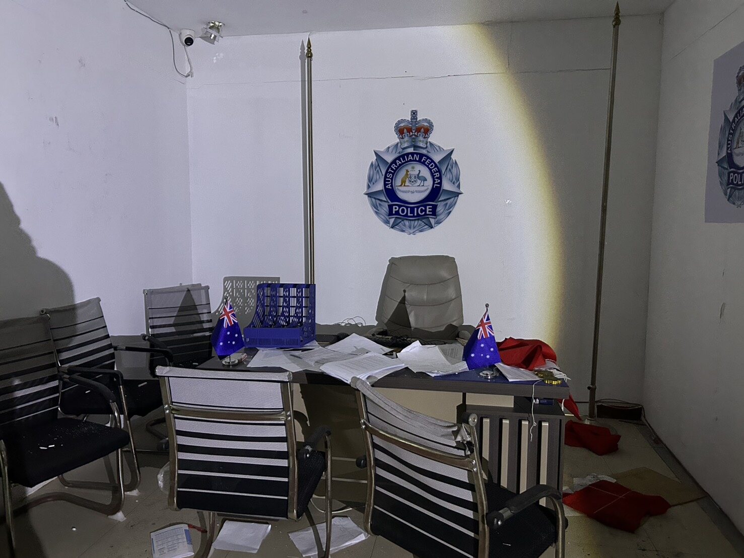 ภายในอาคารต่างๆ มีหลักฐานมากมายที่กลุ่มสแกมเมอร์เคยใช้หลอกลวงประชาชน เช่น การจัดฉากหน่วยงานราชการของประเทศต่างๆ อาทิ สถานีตำรวจ และธนาคารที่ใช้ในการหลอกลวงเหยื่อ เอกสารรายชื่อของเหยื่อในประเทศต่างๆ เสื้อผ้าชุดตำรวจ รวมถึงยังมีเครื่องใช้ไฟฟ้า และของใช้ส่วนตัวทิ้งไว้
