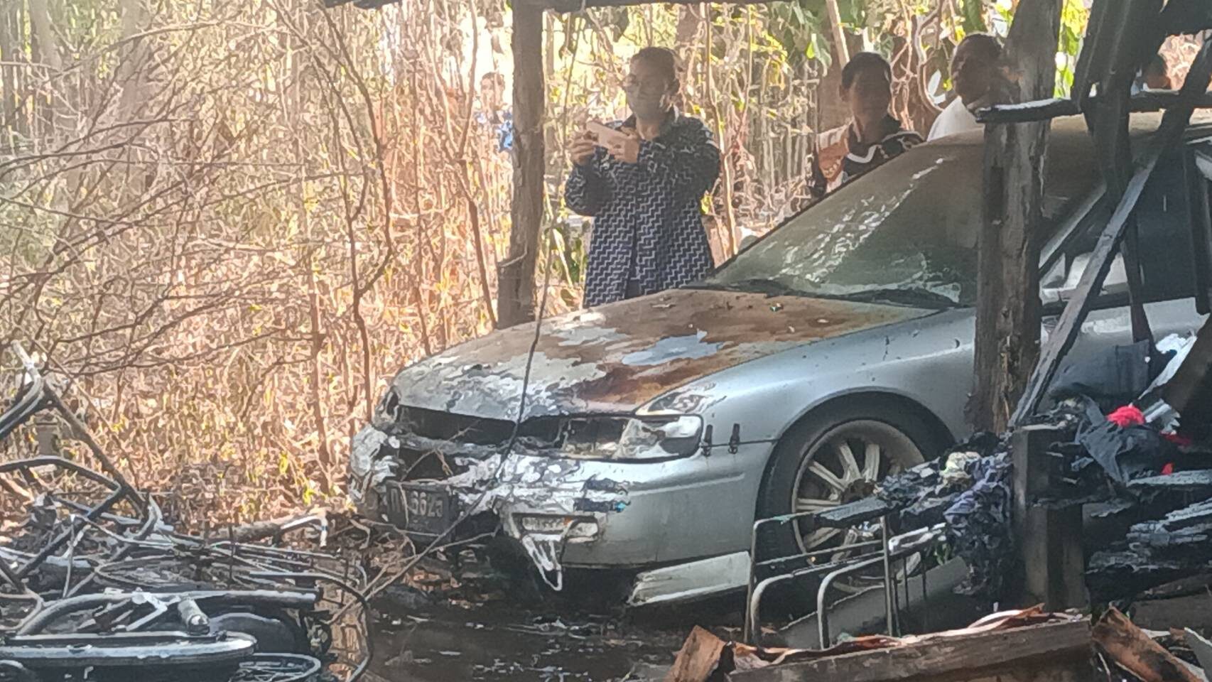 ที่เกิดเหตุเป็นบ้านไม้ยกพื้นสูงถูกไฟไหม้เสียหายทั้งหลัง รถจักรยานยนต์เสียหาย 5 คัน รถเก๋ง 1 คัน โดย นางผาง (สงวนนามสกุล) อายุ 74 ปี เสียชีวิตอยู่ในบ้าน เจ้าหน้าที่ดับเพลิงขององค์การบริหารส่วนตำบลนนทรี (อบต.) อำเภอกบินทร์บุรี จำนวน 3 คัน เร่งฉีดน้ำสกัดเพื่อควบคุมเพลิง โดยที่บ้านไหม้เสียหาย