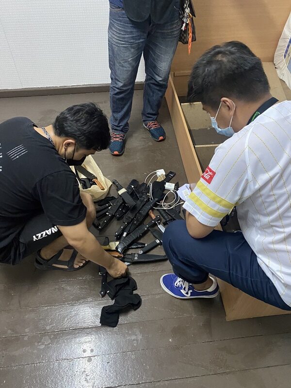 ทั้งนี้บ้านพักดังกล่าว พบว่าไม่มีการใช้งาน แต่มักจะมีนักศึกษางัดเข้าไปใช้หลับนอน โดยเจ้าหน้าที่พบมีดซุกซ่อนรวมกันอยู่ในถุงผ้าสีเทา ใต้เตียงที่นอน แบ่งเป็นมีดปลายแหลมใบตาย จำนวน 32 เล่มและมีดพับ จำนวน 9 เล่ม จึงเก็บไว้เป็นหลักฐานทันที