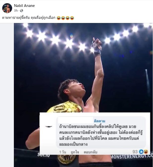 อ่านข่าวต้นฉบับได้ที่ : นาบิล ตามหา ชาย คอมเมนต์เกรียน ถ้าชนะ นิโค จะกินขี้ เจ้าตัวโพสต์ล่าสุด ขอทำใจก่อน