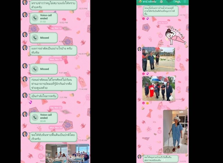 ทั้งนี้คุณพ่ออดีตสามีได้โทรสอบถามอาการป่วยและส่งกำลังใจให้สาวทับทิมหายโดยเร็ววัน พ่อชวนเพิ่งทราบว่าทับทิมไม่สบาย ตอนนี้ติดงานในพื้นที่อยู่ที่ จ.ตรัง หากขึ้นมากรุงเทพฯจะไปเยี่ยมสาวทับทิมด้วย พร้อมเผยแชทที่พ่อชวนคอยสอบถามอาการอดีตลูกสะใภ้ พร้อมฝากฝังอาจารย์หมอให้ช่วยดูแลอาการสาวทับทิมด้วย