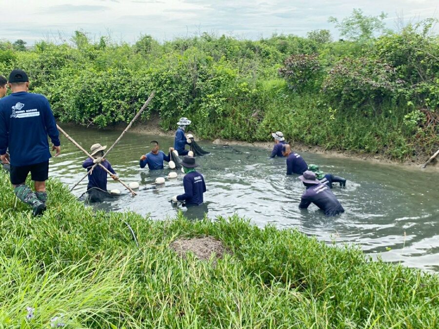 กรมราชทัณฑ์ ร่วมกับประมงจังหวัดสมุทรสงคราม นำผู้ต้องขัง 8 คน ช่วยเหลือสังคม ลุยจับ ปลาหมอคางดำ 200 กิโลกรัม ช่วยลดโอกาสแพร่ขยายพันธุ์