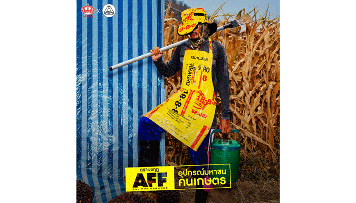 ปุ๋ยตรามงกุฎ ผู้นำอุตสาหกรรมปุ๋ยเคมีในประเทศไทย จับมือ VML Thailand ครีเอทีฟเอเจนซี่ชั้นนำ และ Sackitem แบรนด์อัพไซเคิลชื่อดังสัญชาติไทย เปิดตัวแคมเปญ "AFF: ALL FOR FARMERS อุปกรณ์มหาชนคนเกษตร" อัพไซเคิลถุงปุ๋ยของเกษตรกร และถุงที่ไม่ผ่านมาตรฐาน QC เป็นคอลเลกชันแฟชั่นสุดคูล ที่พร้อมรันวงการสตรีทแฟชั่นและชุมชนชาวเกษตรกรเข้าด้วยกันอย่างลงตัว ผ่านการผสมผสานความคิดสร้างสรรค์ สู่การพัฒนาสิ่งใหม่ที่เน้นใช้งานได้จริง ด้วยไอเดียที่มุ่งเน้นความยั่งยืนสร้างรายได้เสริมให้กับชุมชนพี่น้องชาวเกษตรกร สู่การมุ่งยกระดับคุณภาพชีวิตเกษตรกรไทยให้ดีขึ้นอย่างยั่งยืน