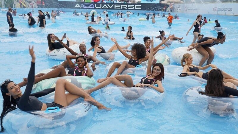 และในวันนี้เหล่าสาวงามจากนานาประเทศได้ไปผ่อนคลายกันที่สวนน้ำโคลัมเบีย พิคเจอร์ส อควาเวิร์ส (Columbia Picture Aquavers Thailand) สวนน้ำขนาดใหญ่ธีมภาพยนตร์ฮอลลีวูด สู่โลกของภาพยนตร์เรื่องโปรดของทุกคน ก่อนจะเปลี่ยนชุด เล่นสวนน้ำกันให้ฉ่ำปอด ถ่ายภาพ ถ่ายคลิป ประชาสัมพันธ์ส่งเสริมการท่องเที่ยวไทย ตกเย็นดินเนอร์มื้อพิเศษ บ้านสุขาวดี (Baan Sukhawadee)