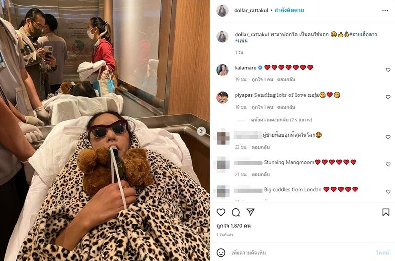 โดยมีคนบันเทิงจำนวนมากเข้ามาคอมเมนต์ส่งกำลังใจกันล้นหลาม อาทิ กาละแมร์ พัชรศรี ส่งกำลังใจพร้อมข้อความว่า ความรักที่ยิ่งใหญ่จะชนะทุกอย่าง เป็นกำลังใจให้พี่ดอลลาร์และแมงมุมเสมอนะคะ ขอบคุณในการแบ่งปันความรักความหวัง ความศรัทธาอันแรงกล้า รักและเคารพค่ะ ด้าน เจี๊ยบ โสภิตนภา ก็คอมเมนต์ส่งกำลังใจว่า ขอส่งความรัก และ กำลังใจให้พี่ และ มุม และ ครอบครัวทุกวันค่ะ , กุ๊ก กฤติกา ก็ส่งกำลังใจเช่นกันว่า เป็นความรักที่งดงามมากๆ ส่งกำลังใจให้ทั้งสองท่านนะคะ เป็นต้น
