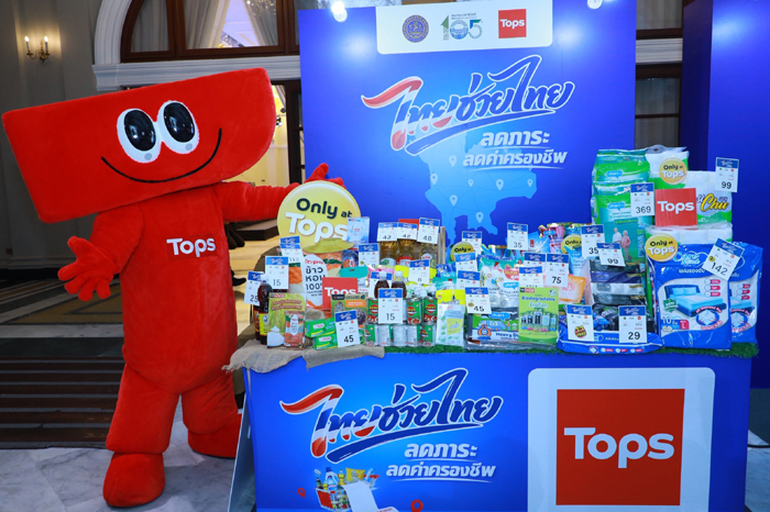 ท็อปส์ ในเครือเซ็นทรัล รีเทล ประกาศพร้อมเคียงข้างคนไทย เดินหน้าขานรับนโยบายภาครัฐ เข้าร่วม “ไทยช่วยไทย” ลดภาระ ลดค่าครองชีพ ภายใต้การดำเนินงานของกรมพัฒนาธุรกิจการค้า กระทรวงพาณิชย์ เพื่อร่วมลดภาระค่าครองชีพและบรรเทาค่าใช้จ่ายของประชาชน ท่ามกลางสถานการณ์ต้นทุนพลังงานที่ปรับตัวสูงขึ้น และส่งผลต่อราคาสินค้าในภาพรวม ผ่านการนำเสนอสินค้า Own Brand กว่า 656 รายการ พร้อมส่วนลดสูงสุด 50% และราคาพิเศษเริ่มต้นเพียง 10 บาท ครอบคลุมสินค้าจำเป็นในชีวิตประจำวันอย่างครบครันจากกว่า 11 แบรนด์ อาทิ TOPS, My Choice, Smarter, Love The Value, Chef Selection, Baggy, Sofu Skin, Snacker, Yindee, Kon Thai และ Juvie พร้อมตรึงราคาสินค้าจำเป็นกว่า 10 รายการ อาทิ ข้าวสาร ปลากระป๋อง น้ำปลา ถุงขยะ กระดาษทิชชู่ น้ำยาล้างจาน และผงซักฟอก ตั้งแต่วันนี้ถึง 31 พฤษภาคมนี้ พร้อมกันนี้ในวันเปิดตัวยังได้รับเกียรติจาก นายอนุทิน ชาญวีรกูล นายกรัฐมนตรี พร้อมด้วย นางศุภจี สุธรรมพันธุ์ รัฐมนตรีว่าการกระทรวงพาณิชย์ และ นายพูนพงษ์ นัยนาภากรณ์ อธิบดีกรมพัฒนาธุรกิจการค้า ในโอกาสเยี่ยมชมบูธสินค้าของท็อปส์ โดยมีผู้บริหารจากบริษัท เซ็นทรัล ฟู้ด รีเทล จำกัด ในเครือเซ็นทรัล รีเทล ได้แก่ นายจักรกฤษณ์ จตุปัญญาโชติกุล รองกรรมการผู้จัดการฝ่ายการตลาด ประชาสัมพันธ์ และกิจกรรมเพื่อสังคม และ นางสาวศิริวรรณ สุริยะมงคล ผู้อำนวยการฝ่ายสินค้า Own Brand ให้การต้อนรับอย่างเป็นทางการ พร้อมนำเสนอศักยภาพสินค้าและมาตรฐานคุณภาพที่สร้างความเชื่อมั่นให้กับผู้บริโภค ณ ตึกสันติไมตรี ทำเนียบรัฐบาล