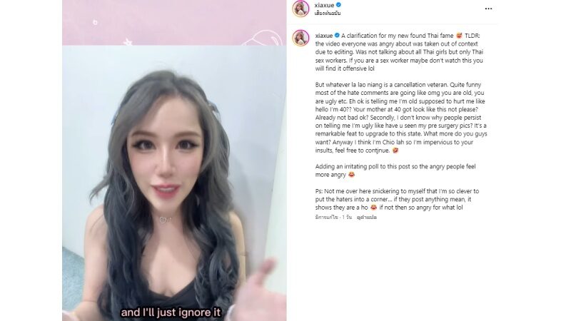 จวกยับ! อินฟลูฯดังเล่า ชายสิงคโปร์ชอบนอกใจไปหาสาวไทย เหตุเป็นประเทศยากจน ชอบมาขายบริการทางเพศ ล่าสุดชี้แจง-ขอโทษแล้ว ลั่นถูกตัดต่อให้เป็นคลิปสั้น ๆ ดังนั้น ความหมายจึงเปลี่ยน