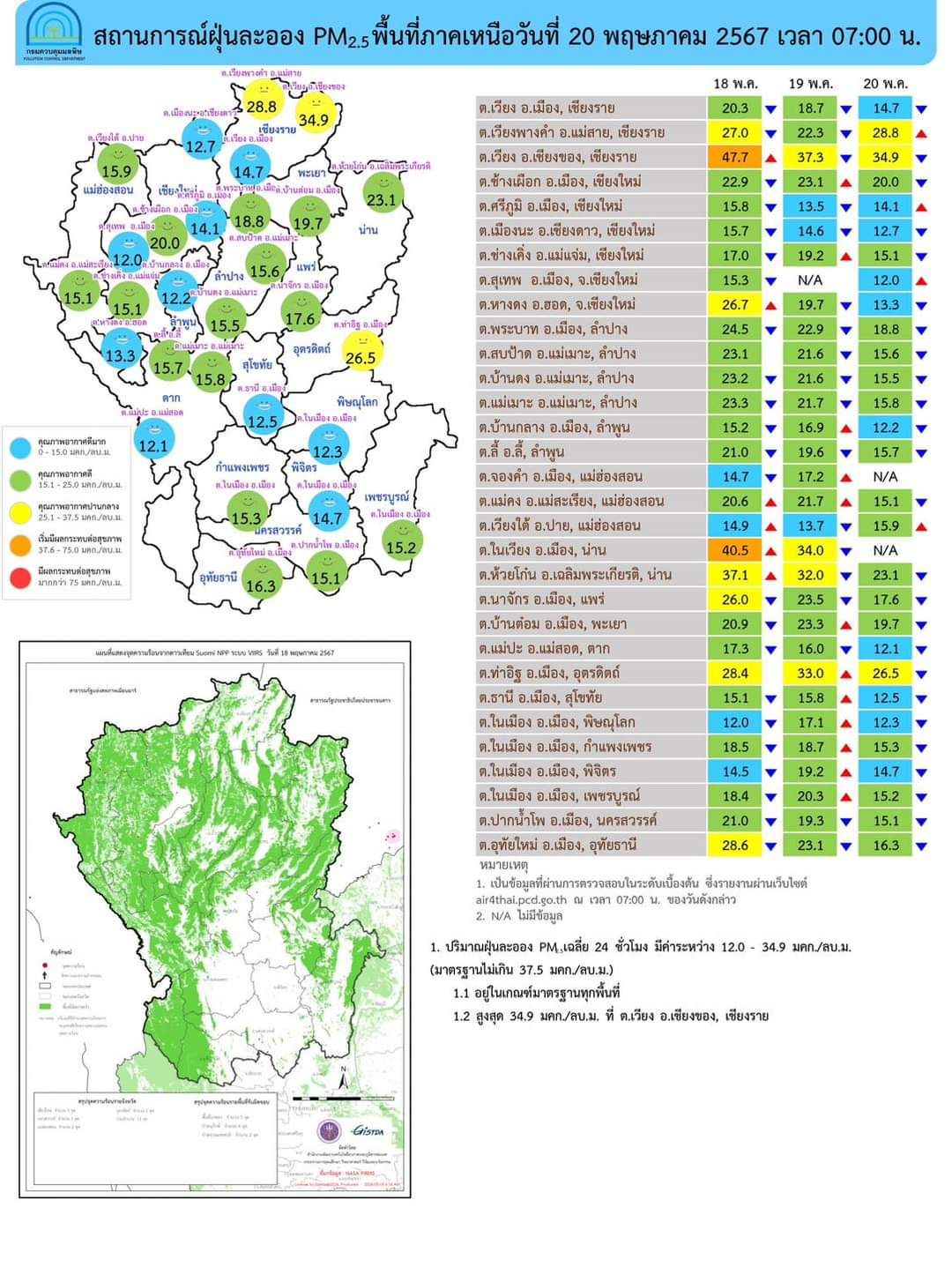 ภาคเหนือ ภาพรวมอยู่ในเกณฑ์ดี ตรวจวัดได้ 12.0-34.9 มคก./ลบ.ม.