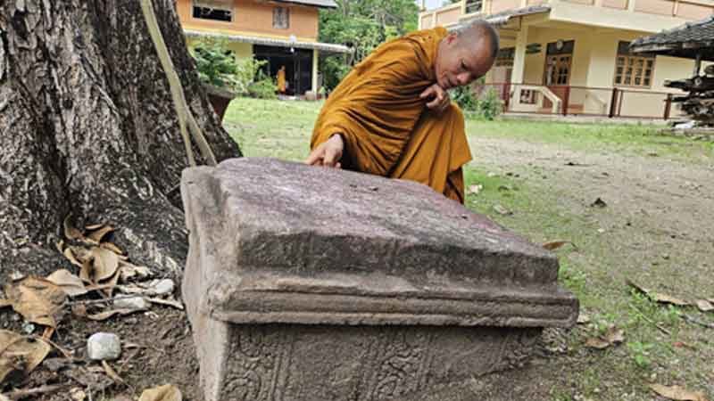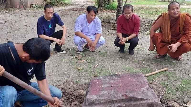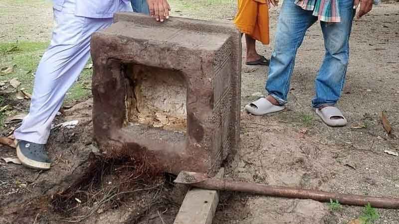 ฮือฮา ขุดพบโบราณวัตถุสำคัญ "แท่นศิลา" ฐานเทวรูปพระนารายณ์ อายุนับ 1,000 ปี