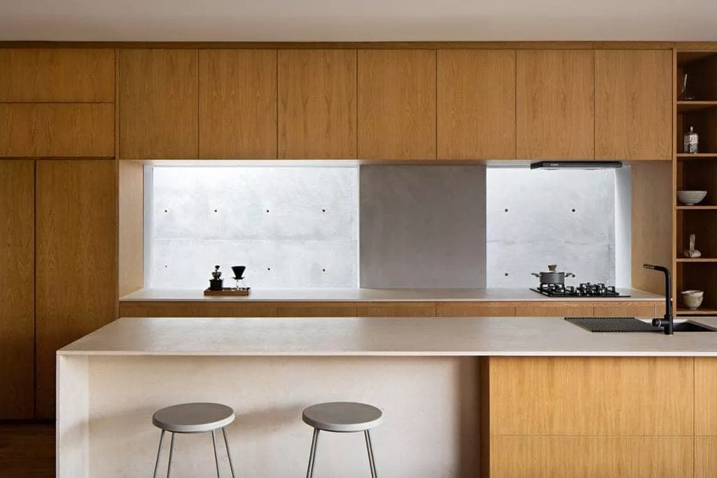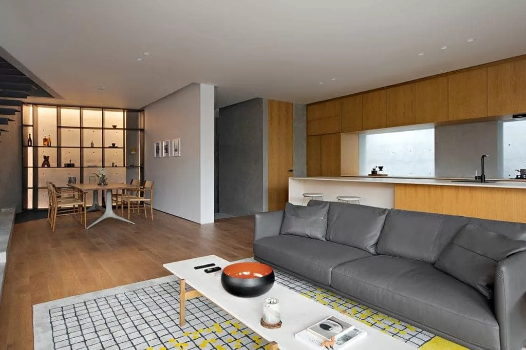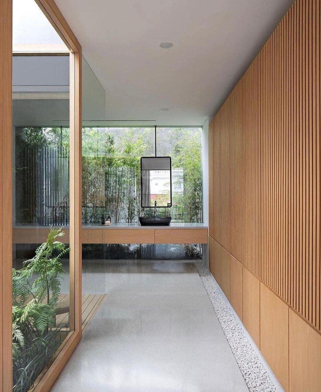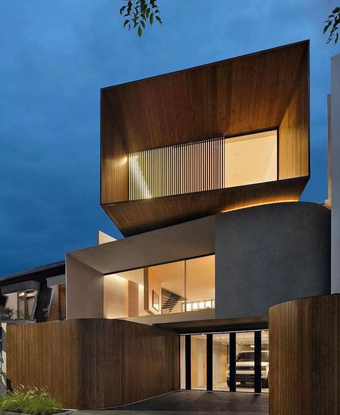 บ้านเดี่ยว สไตล์โมเดิร์น จาก Woodlamindonesia มีการออกแบบที่เรียบง่าย ทันสมัย เน้นใช้โทนสีสบายตา มีการตกแต่งที่อบอุ่น โดยมีการต่อเติมด้วยไม้สีอ่อน มาตัดกับผนังสีเทา และสีขาวให้ความรู้สึกโดดเด่น ดูแพงมาก พื้นที่ชั้นล่างออกแบบเป็นโรงจอดรถแบบ Indoor ส่วนชั้นบนใช้เป็นพื้นที่สำหรับอยู่อาศัย ซึ่งแบ่งโซนได้ลงตัวเป็นอย่างมาก