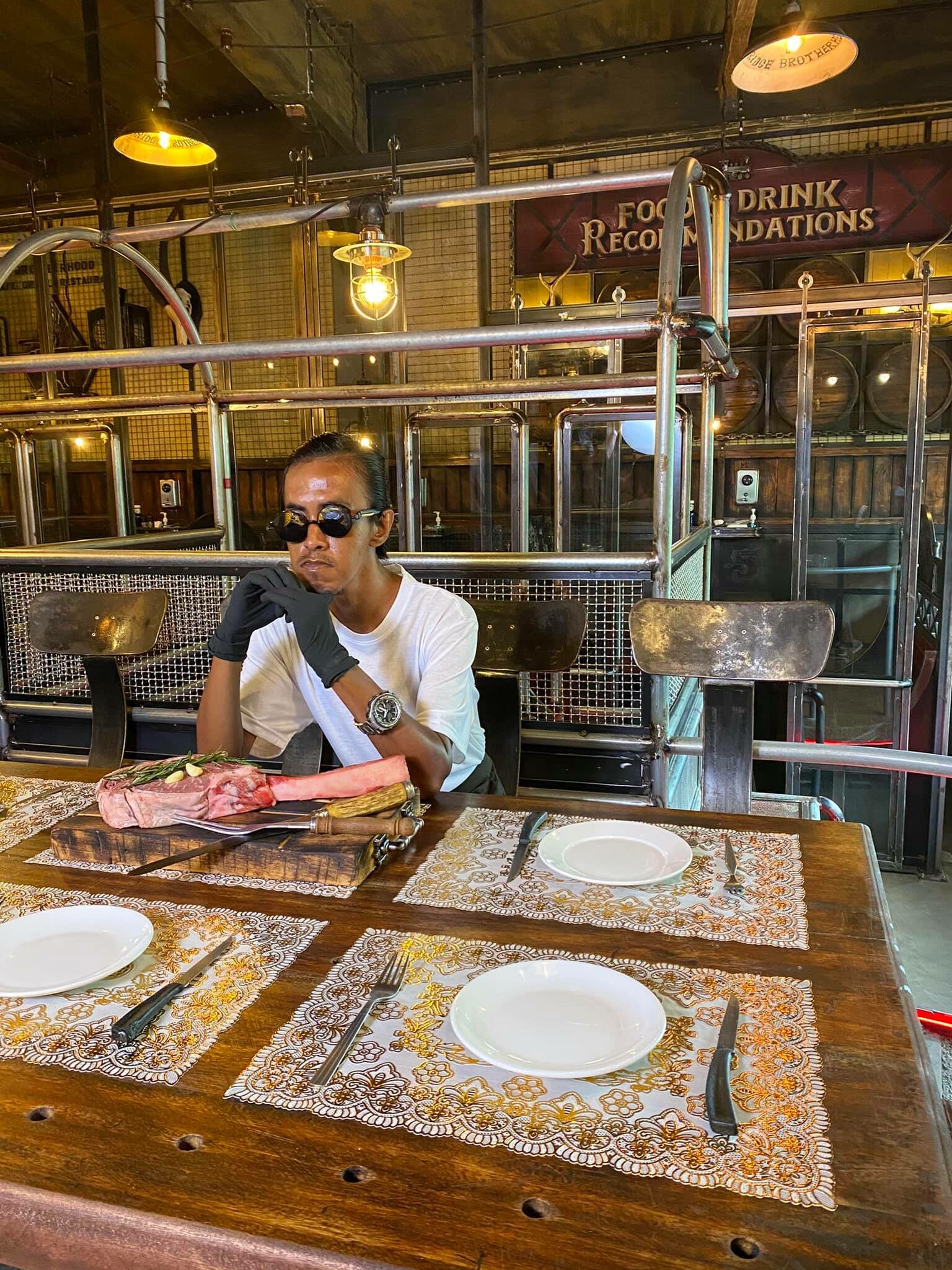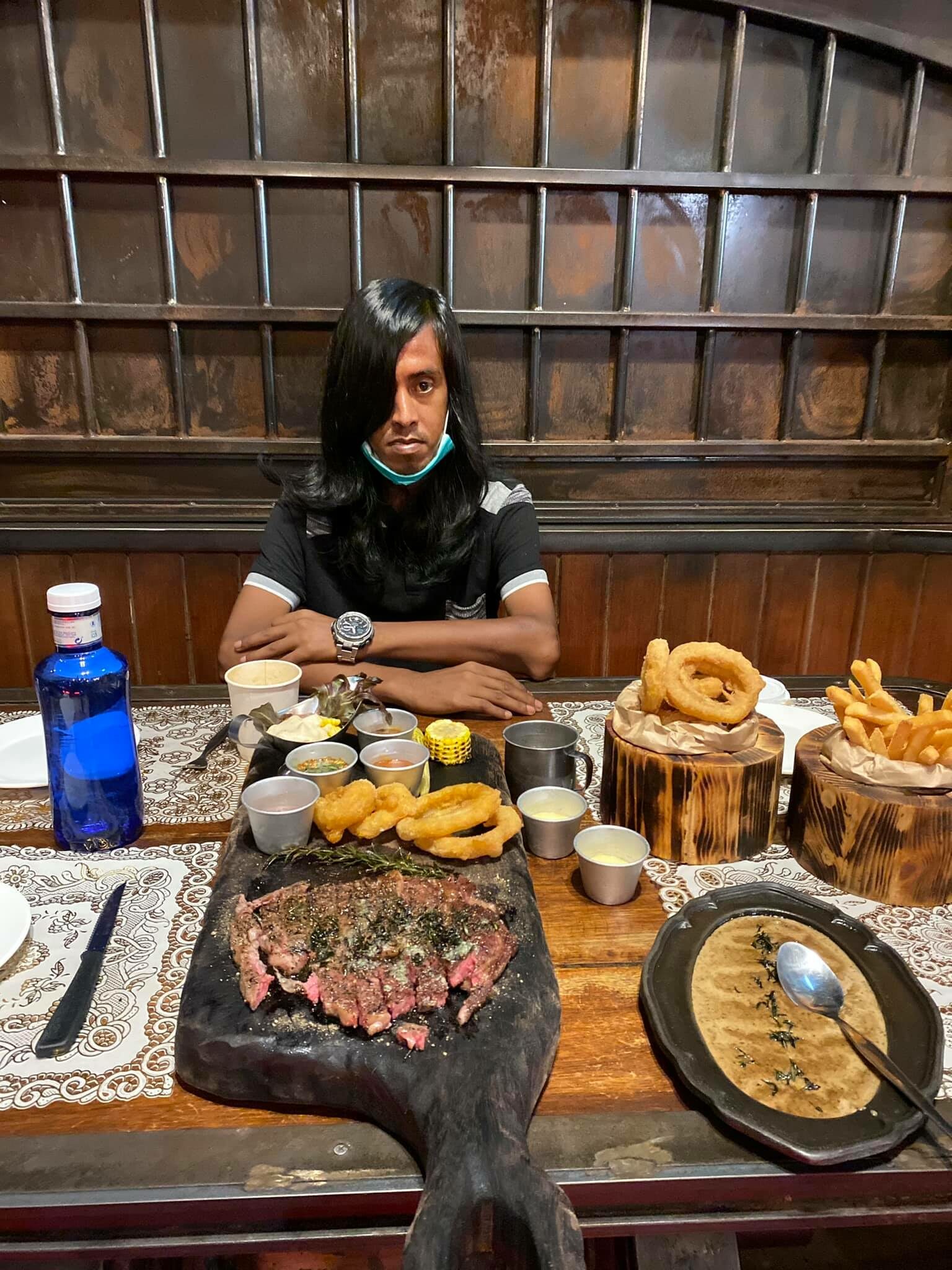 โดยทางเพจขึ้นแคปชั่นว่า “ฝากติดตามผลงาน เอเรน เยเกอร์กันด้วยนะครับ Blackbridge halal steakhouse & restaurant :วัยรุ่นทำไร เอเรนเยอกอร์ :หาอุปกรณ์กินเสต็ก มีดไม่มี กินได้ไง มีด มีด มีด”