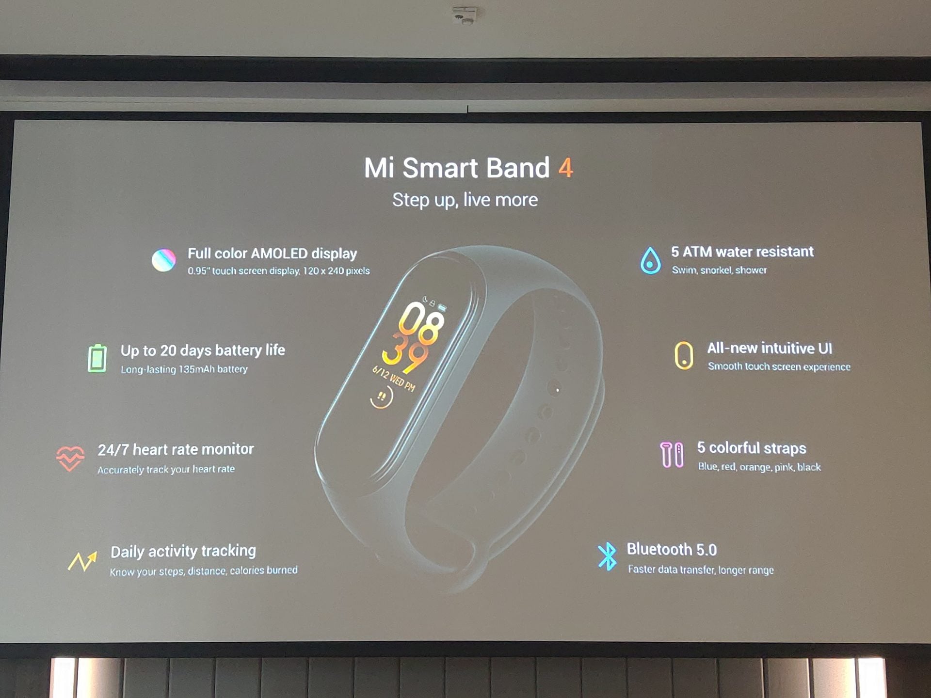 Smartband ตัวล่าสุดที่มาพร้อมหน้าจอสี AMOLED ขนาด 0.95 นิ้ว แบตฯ อึดใช้งานได้ 20 วันต่อการชาร์จ มีระบบวัดการนอนหลับกับคนทั่วโลกได้ แถมควบคุมการฟังเพลงของเราได้