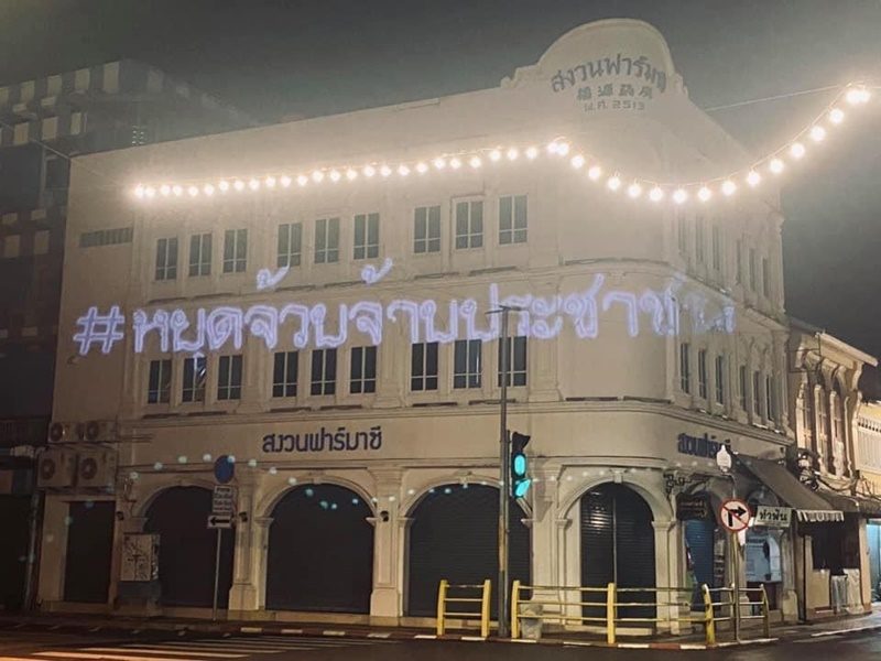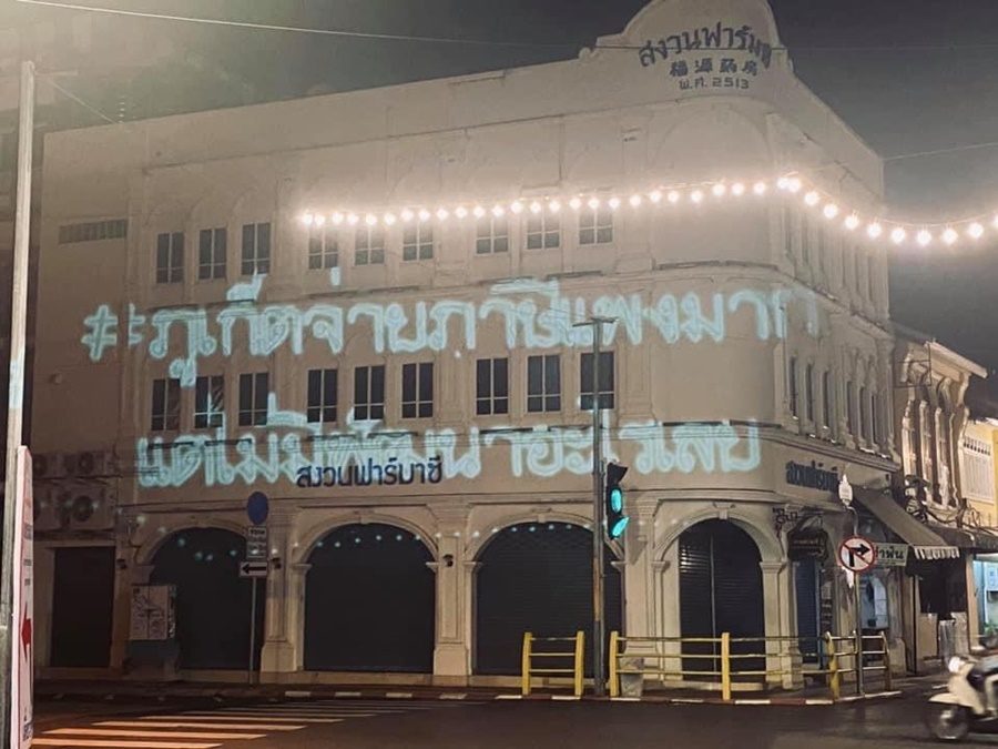 ภูเก็ตปลดแอกไม่ทน ยิงเลเซอร์ต้อนรับ บิ๊กตู่ ทั่วเมือง ประท้วงการบริหาร ลั่นจะไม่อดทน เรียกร้องลาออก ปฏิรูป ยันเป็นการแสดงออกอย่างสันติ