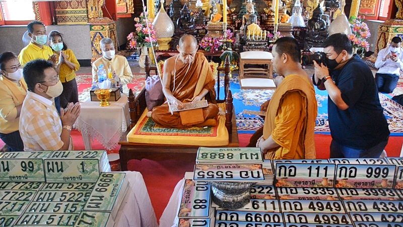 แห่ส่องเลขเด็ด! เกจิดังอุดรฯ ปลุกเสกทะเบียนสวย ทุบแผ่นป้ายเน้นๆ