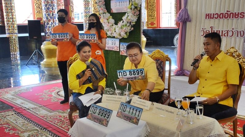 เมื่อเวลา 10.09 น. วันที่ 25 ก.ค. ที่พระอุโบสถ วัดโนนสว่าง ต.หมากหญ้า อ.หนองวัวซอ จ.อุดรธานี นายนิรัตน์ พงษ์สิทธิถาวร ผวจ.อุดรธานี พร้อมด้วย นายธวัชชัย ศรีทอง รองผวจ.อุดรธานี, นางปาหนัน ถนัดค้า ขนส่งจังหวัดอุดรธานี และเจ้าหน้าที่สำนักงานขนส่งจังหวัดอุดรธานี นำแผ่นป้ายทะเบียนรถเลขสวย 301 แผ่น หมวดอักษร กอ. ที่มีความหมาย "ก้าวหน้าร่ำรวย อำนวยโชคลาภ"