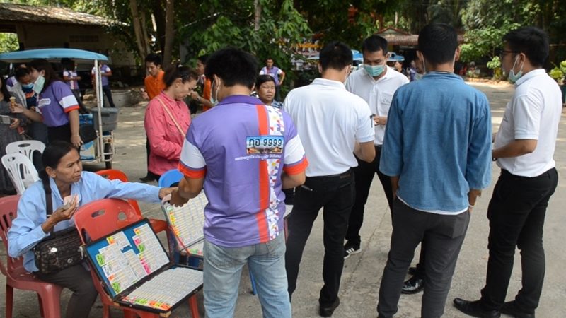 ประชาชนหาซื้อเลขเด็ดที่ได้จากงานพิธีปลุกเสกแผ่นป้ายทะเบียน