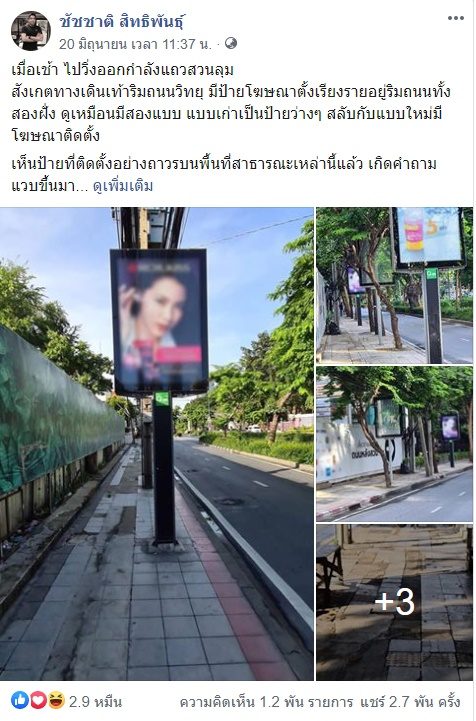 จากกรณี นายชัชชาติ สิทธิพันธุ์ ตั้งคำถามถึงป้ายโฆษณาริมทางเท้า เหมาะสมหรือไม่-ใครอนุญาตพ พร้อมบอกเอาเวลาไปทำทางเท้าให้ดีดีกว่าไหมนั้น