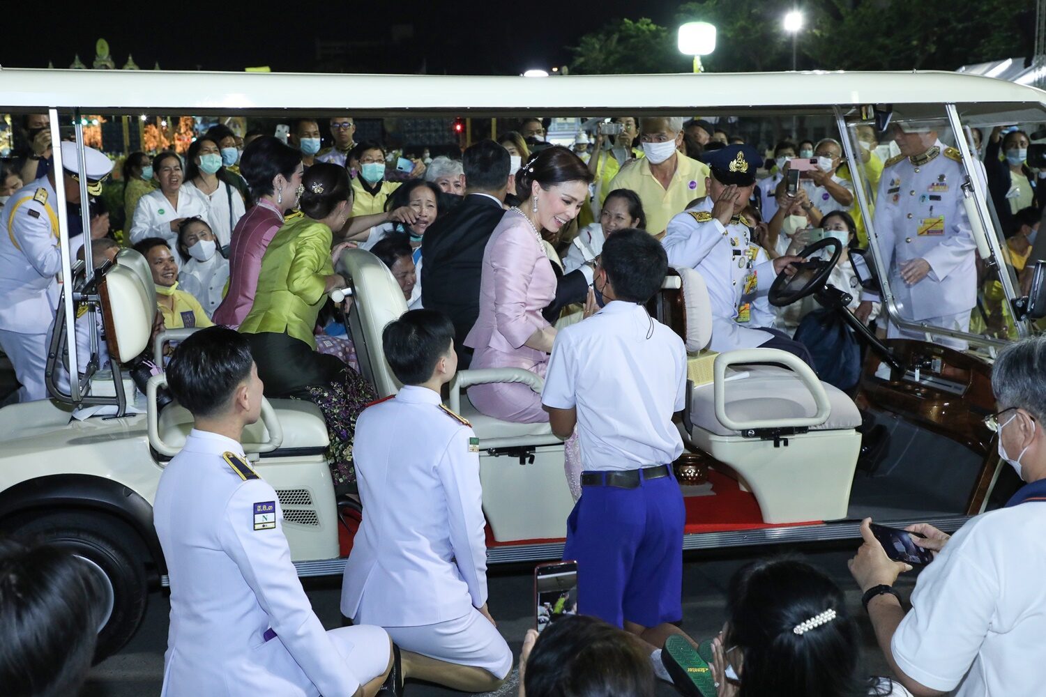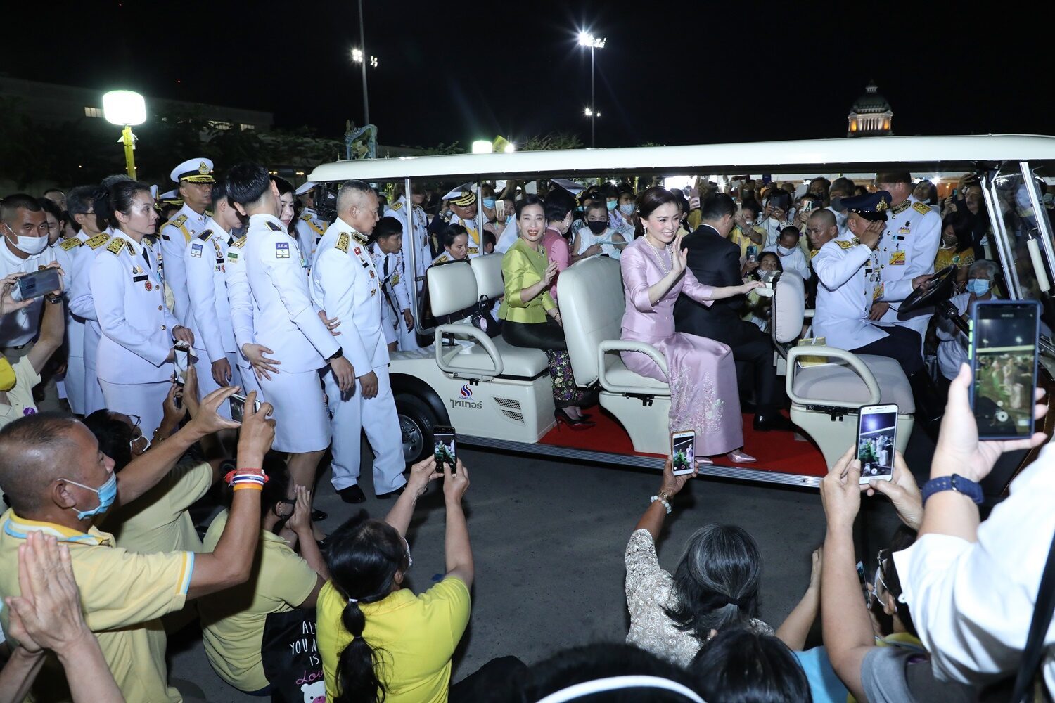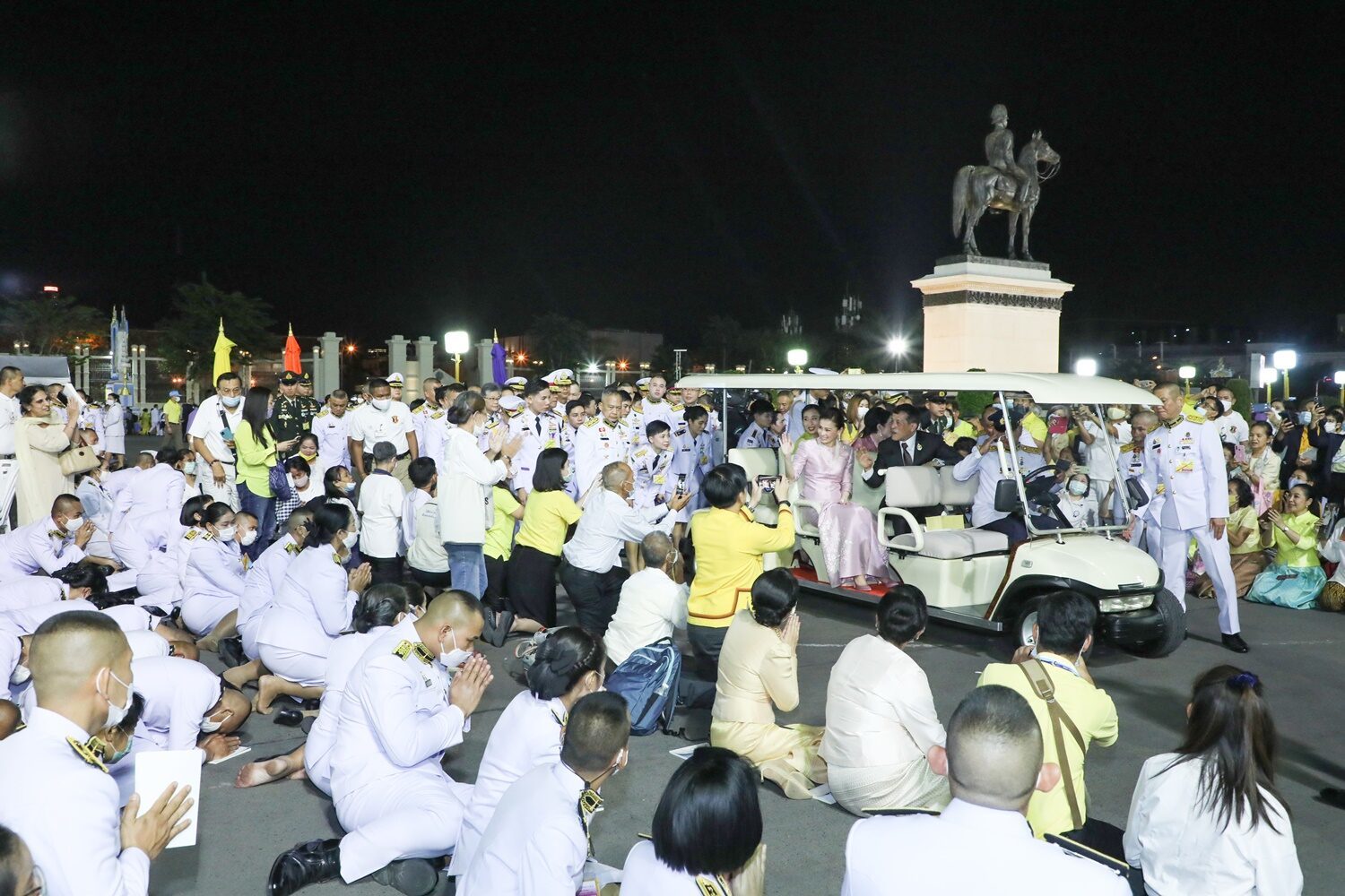 ‘ในหลวง-พระราชินี’ ทรงแย้มพระสรวล โบกพระหัตถ์ทักทายพสกนิกรอย่างใกล้ชิด ภายหลังพิธีสวดเจริญมหามงคลรวมศาสนา 3 ธันวาคม 2563 ณ พระลานพระราชวังดุสิต